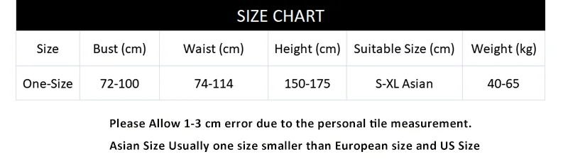 - Weight: Suitable for size between S-XL (Asian Size), Usually one size smaller than US and European size