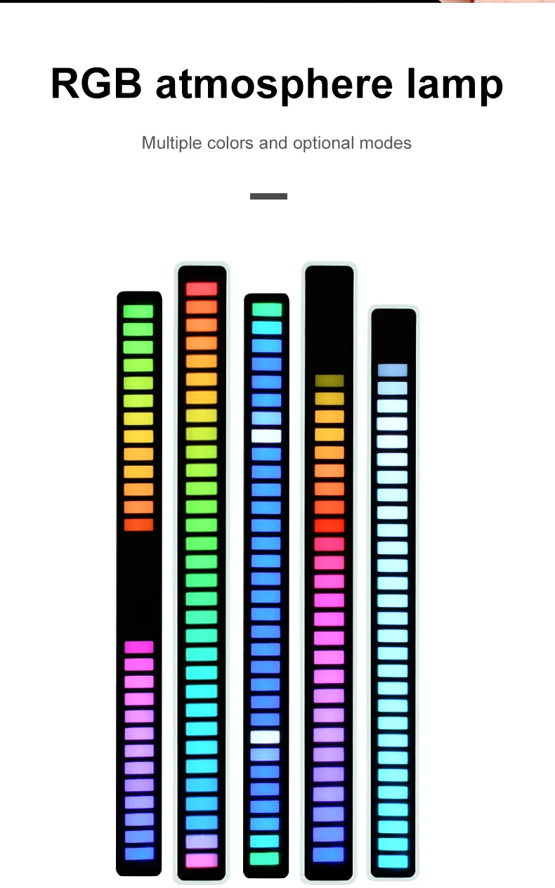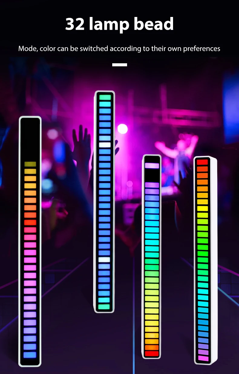 Sound Control Pickup Rhythm Ambient Light Strip Colorful LED Rechargeable Battery Car Computer Audio Music DJ Atmosphere Lamp