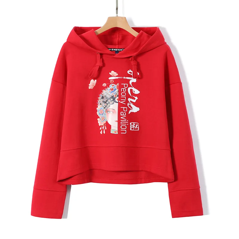Spring Casual Chinese Style Print Women Hoodie Chic Ethnic Style Design Femme Hooded Tops 2021 Loose All-match Sweatshirts