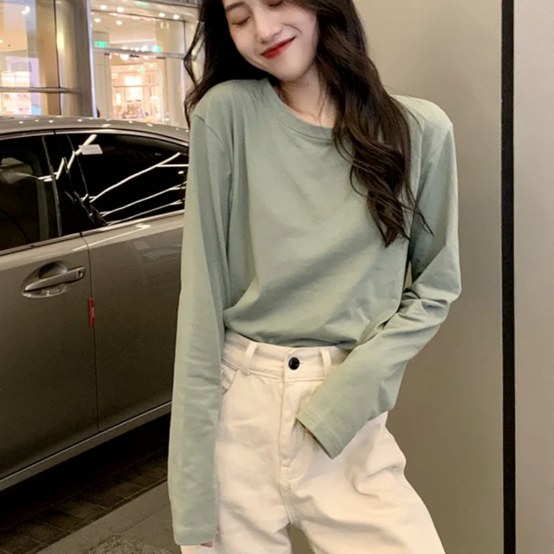 Simple Solid Long Sleeve Woman Tshirts Casual Comfortable Base Shirt 2021 Loose Soft Femme T Shirt Spring All-match Tops O-Neck
