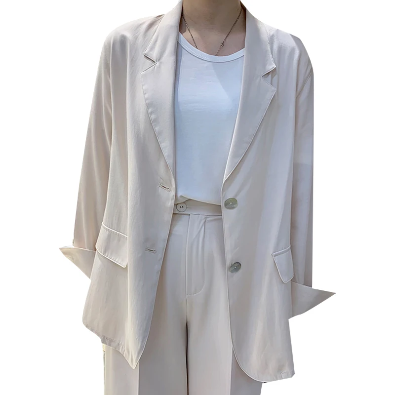 Simple Temperament Solid Thin Suit Coat Femme Spring Korean Fashion All-match Jacket Tops Single Breasted Women Blazers