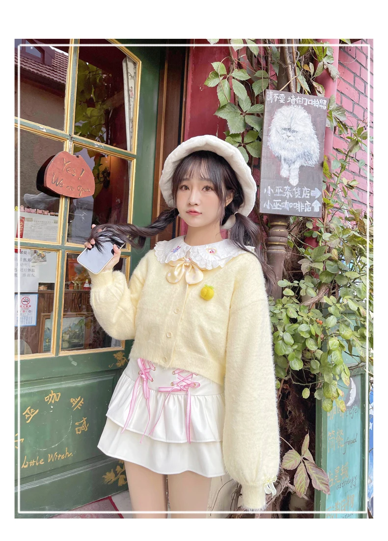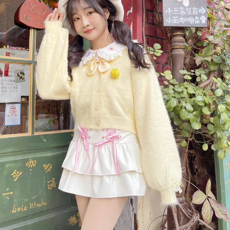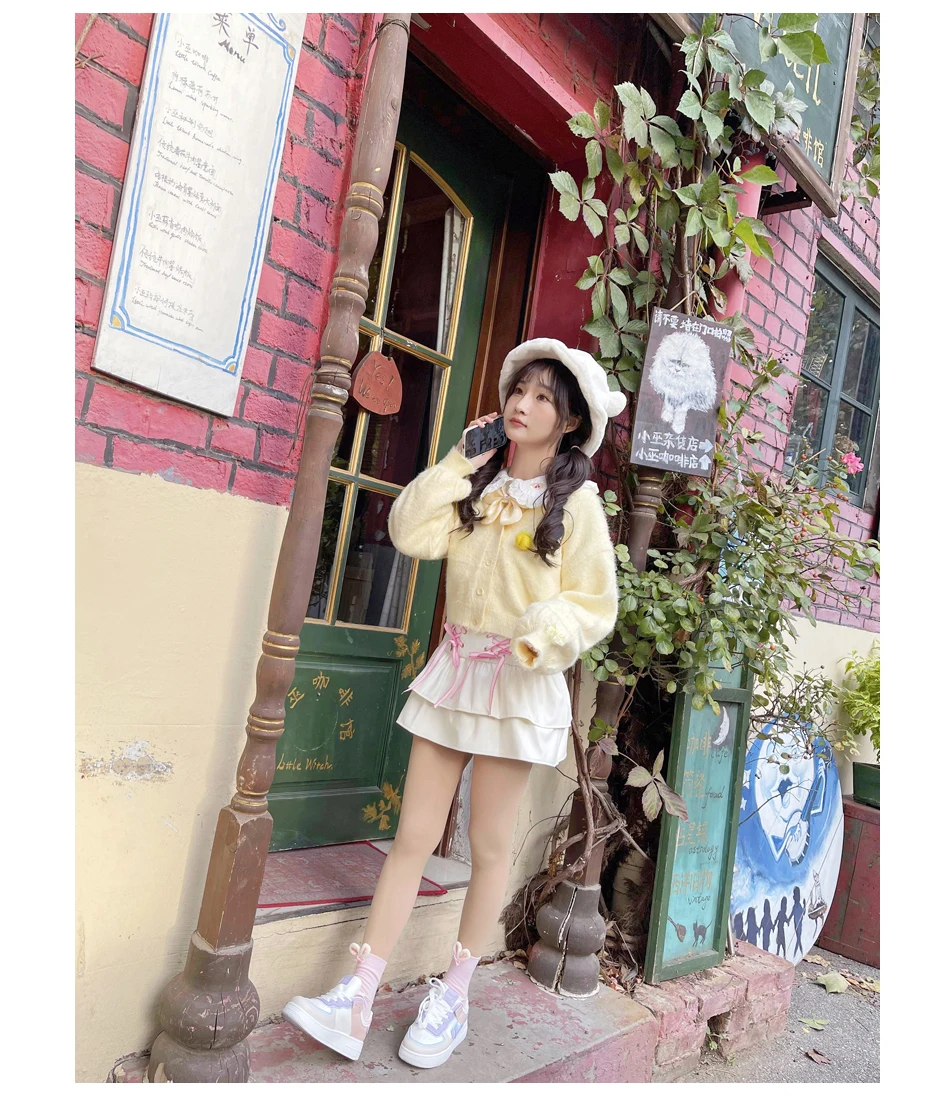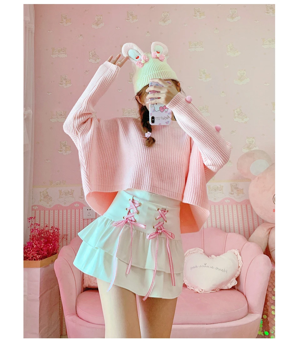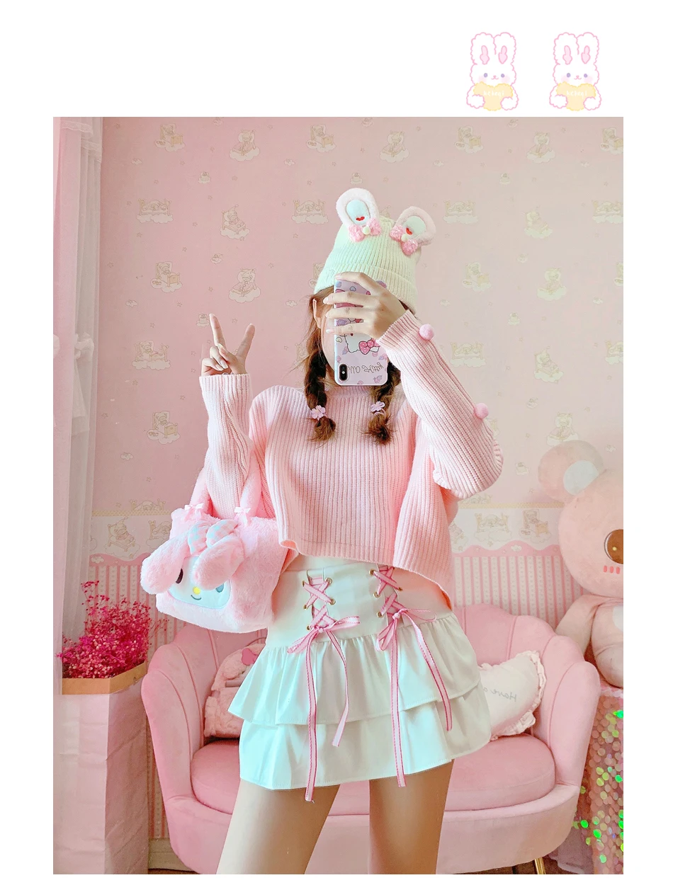 Sweet Cute Pink PU Skirts Spring Mori Girls High Waist Bandage Mini Skirts Kawaii Fashion Designed Japanese Flower Edge Jupe