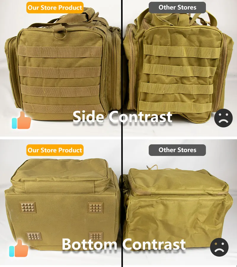 • Function:Shooting range bag has padded multiple compartments to keep your handguns,earmuff, goggles, magazine, ammunition and accessory etc safetly and scratch resistant.