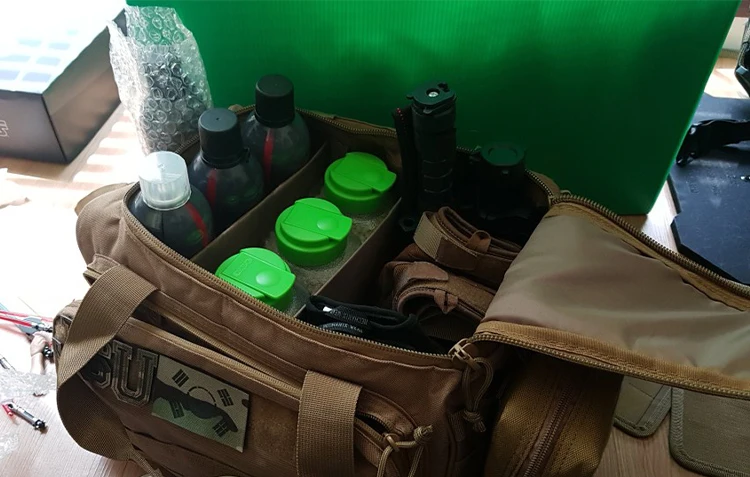 Pistol range bag main compartment with 2pcs removable inner partitions to customize main compartment to individual as tactical range shooting bag or photography duffle