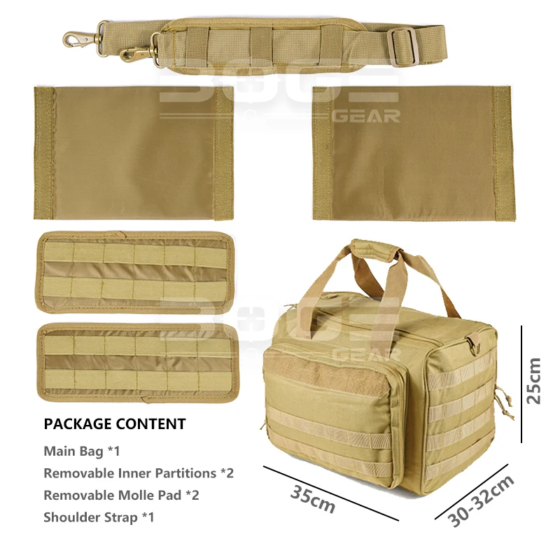 Tactical Range Bag Molle System 600D Waterproof Gun Shooting Pistol Case Pack Khaki Hunting Accessories Tools Sling Bag Camping