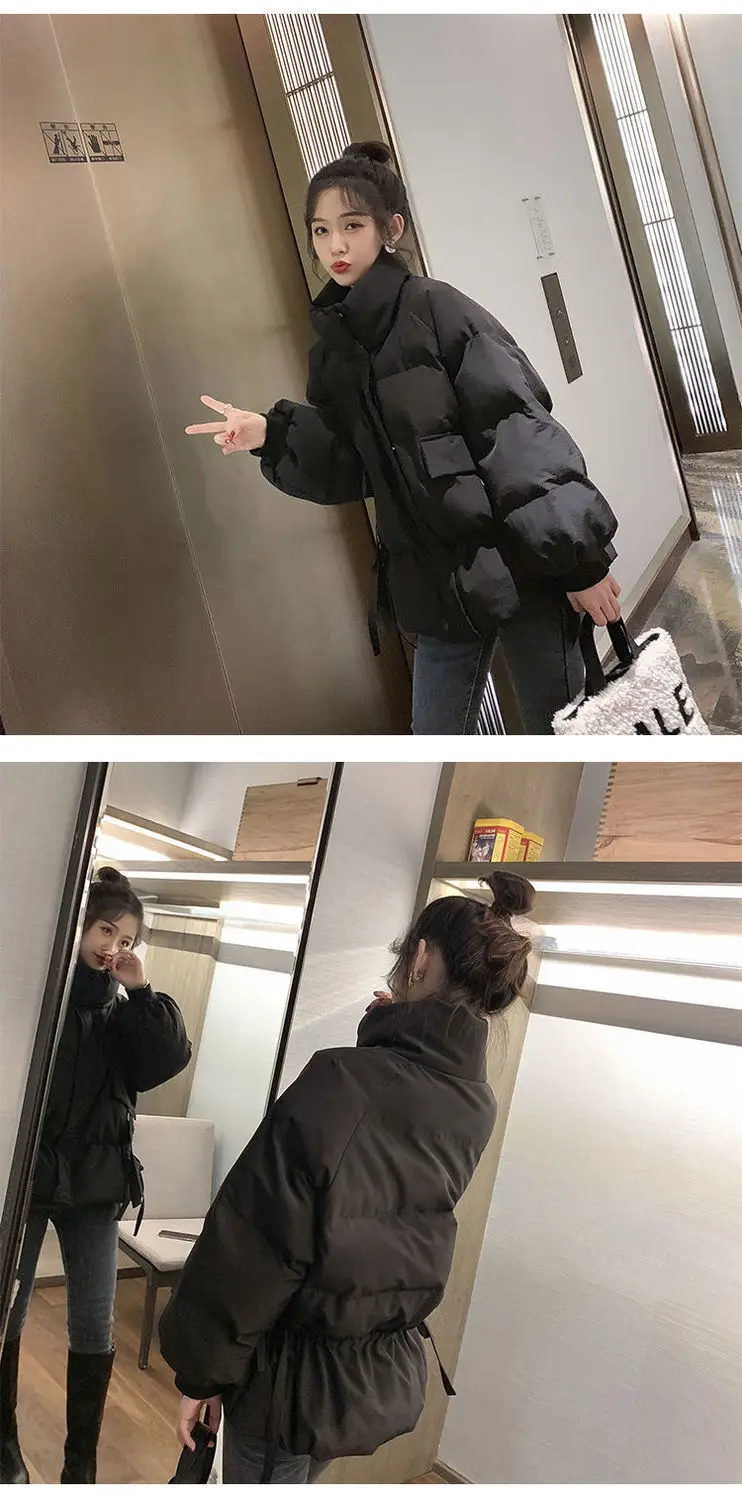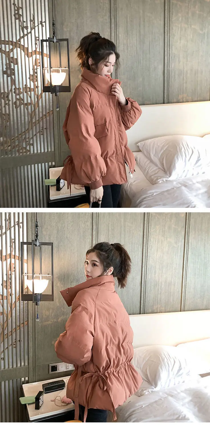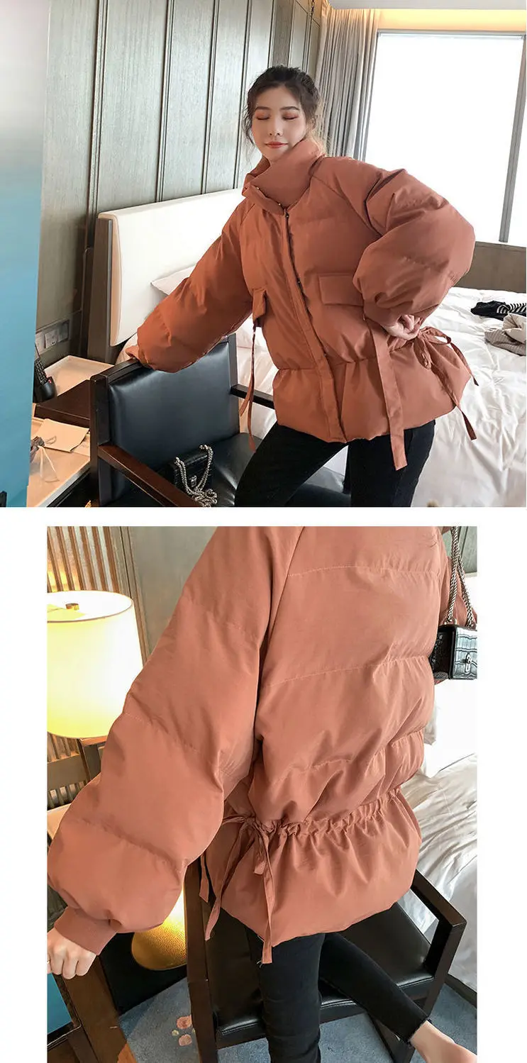 Thick Down Cotton Women's Jacket Solid Woman Coat Drawstring Design Cotton-Padded Clothes Zipper Female Parka Short Women Jacket