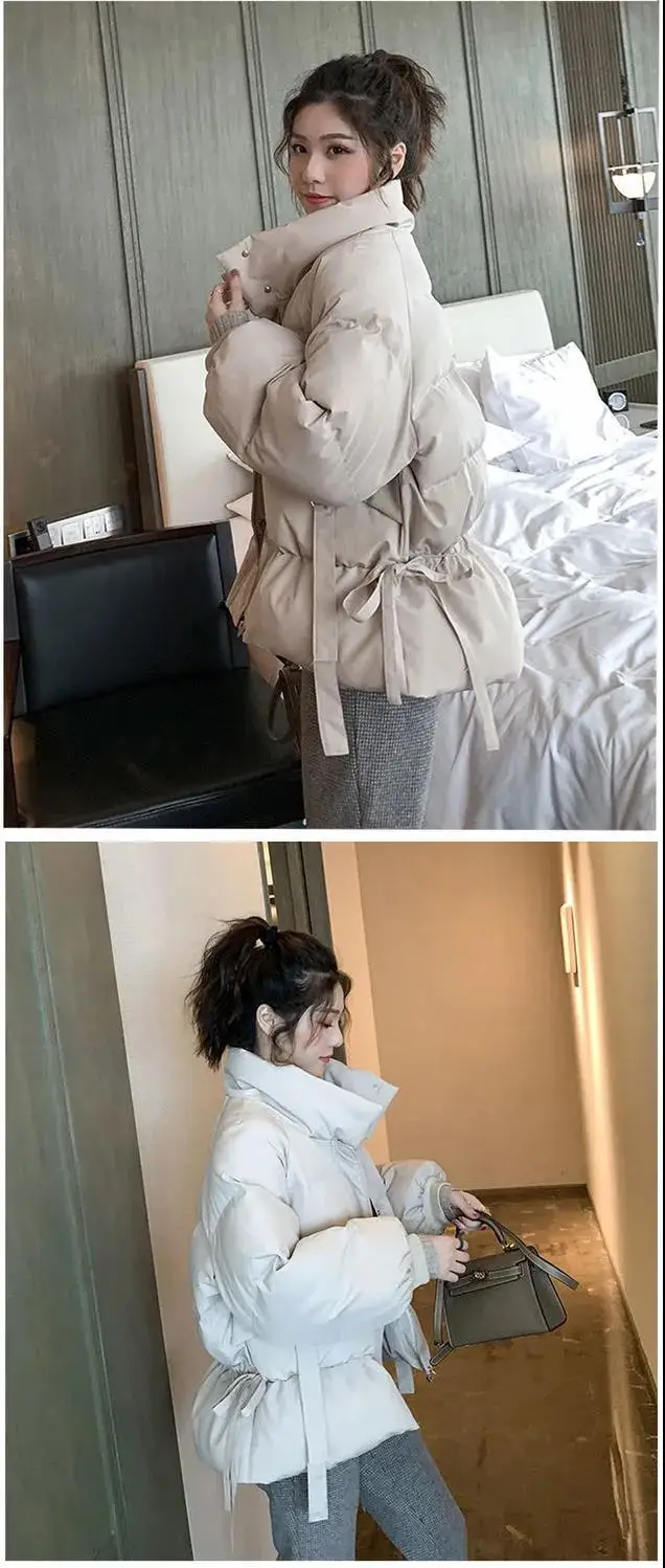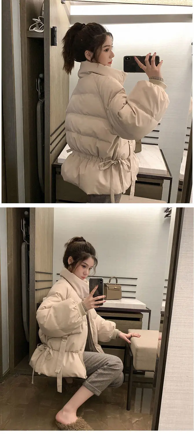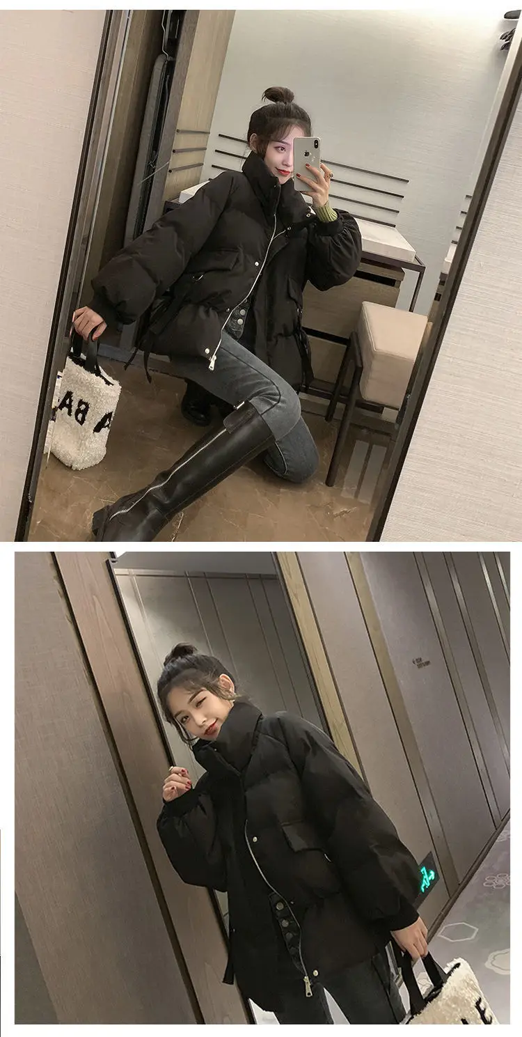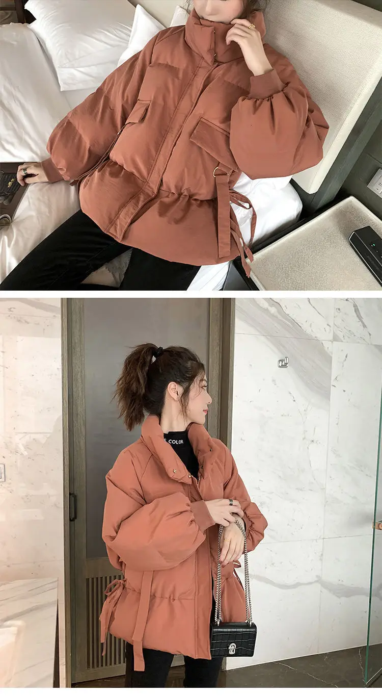 Thick Down Cotton Women's Jacket Solid Woman Coat Drawstring Design Cotton-Padded Clothes Zipper Female Parka Short Women Jacket