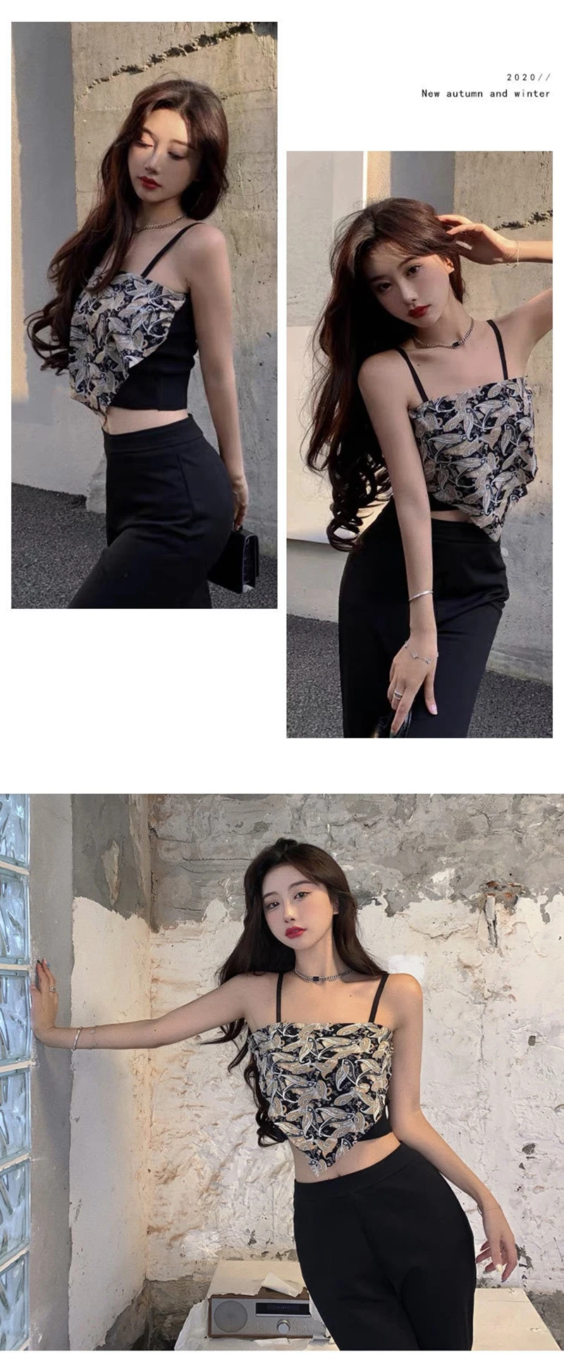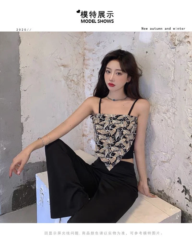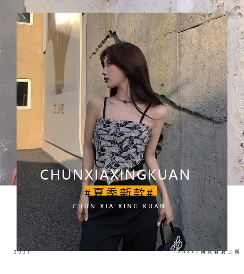 Top Women's T-shirt Shoulder Cami Bra Slim Tanks Top Women Printing Blouse Clothing Camisoles Spaghetti Strap Streetwear Top