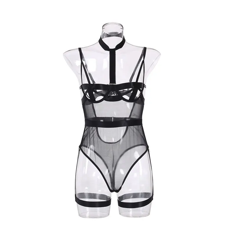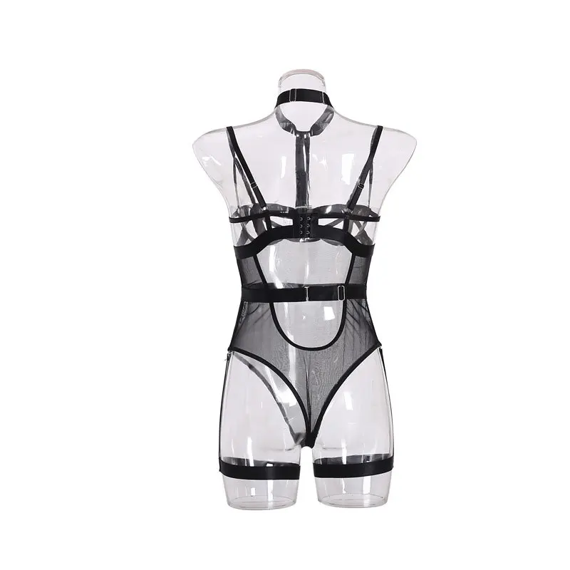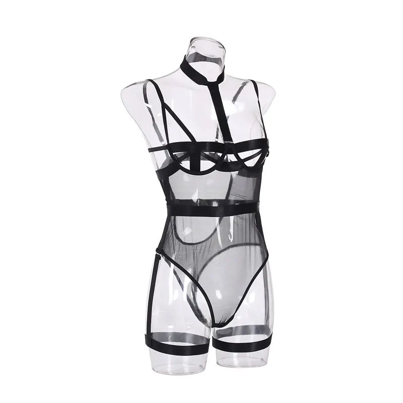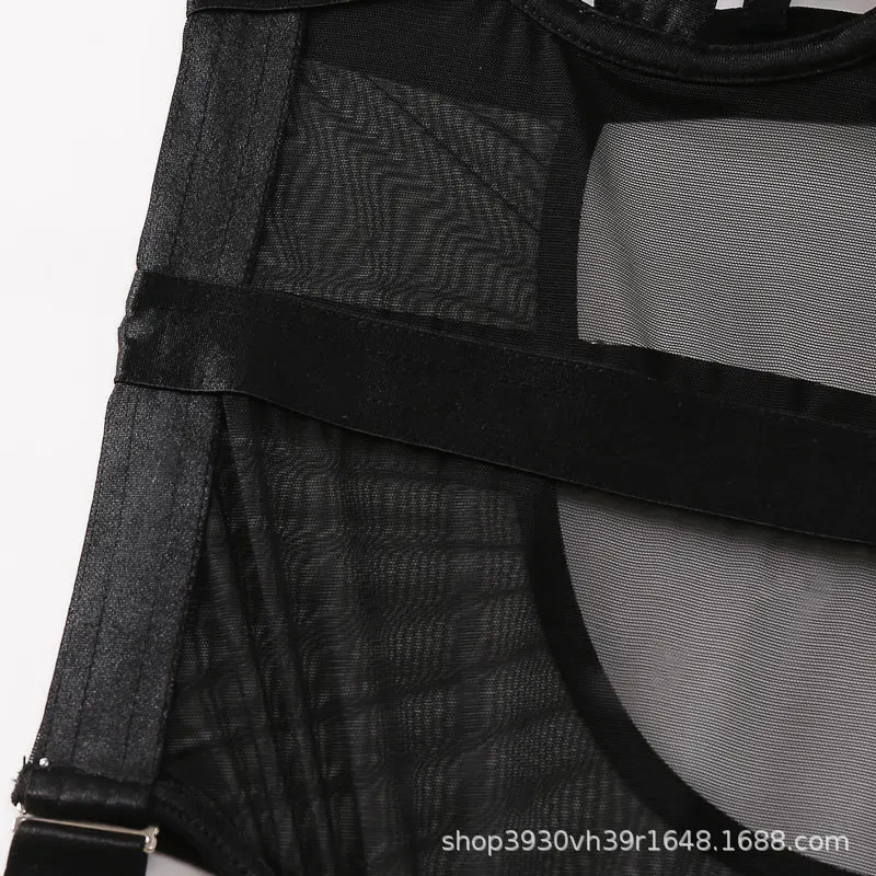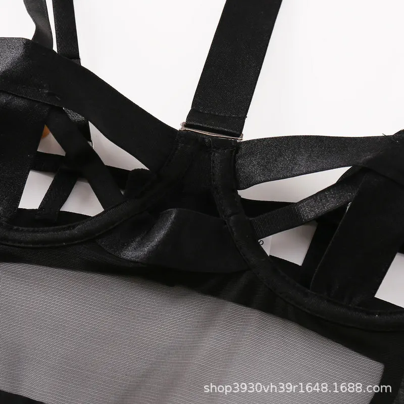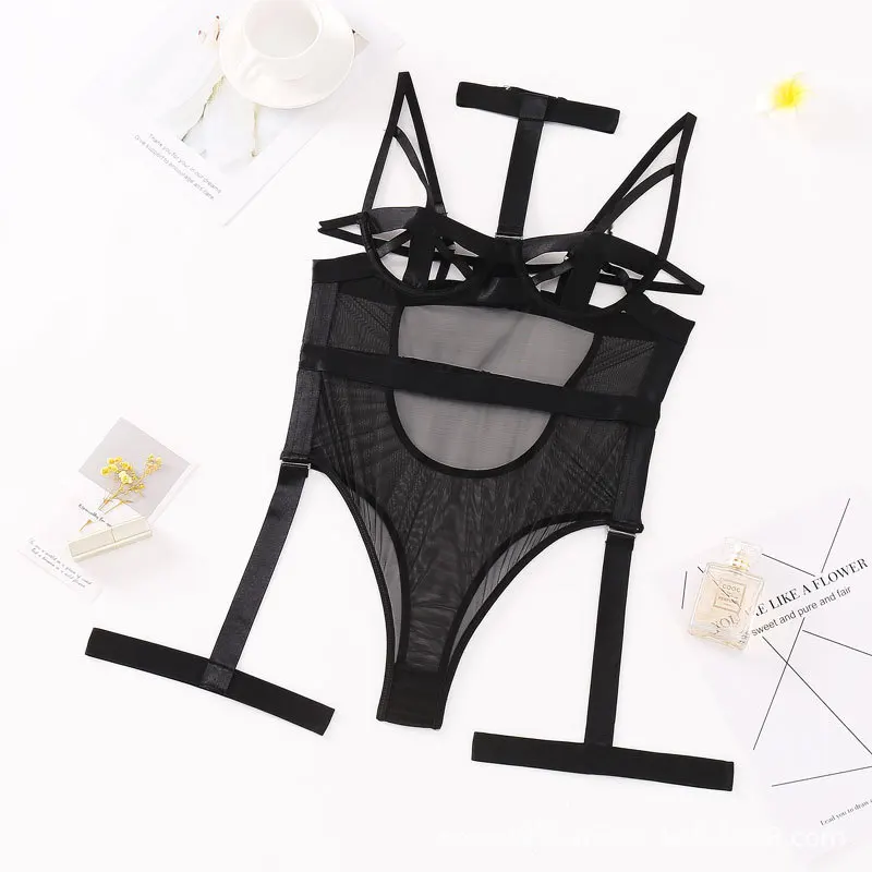 Women Lingerie Babydoll 2022 New Sexy Bodysuit Hollow Out Deep V Neck Halter Black Exotic Conjoined Underwear One Piece