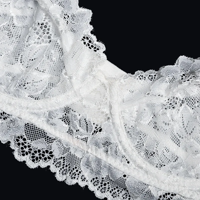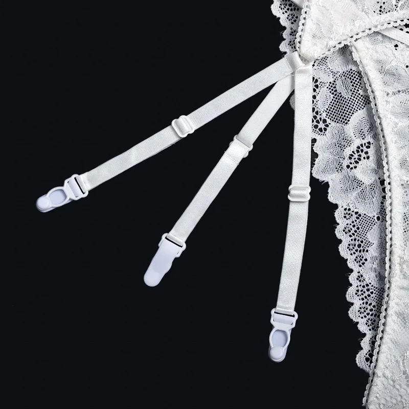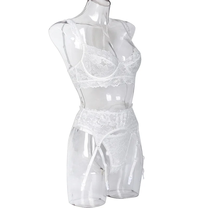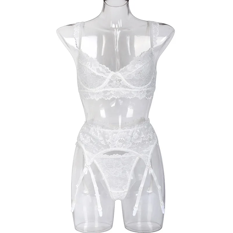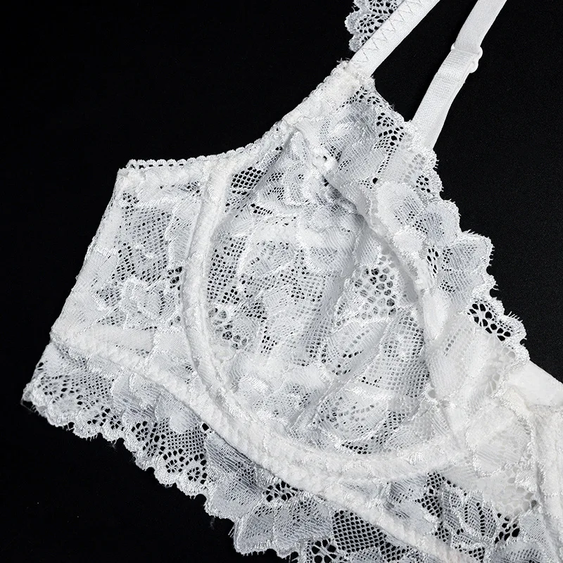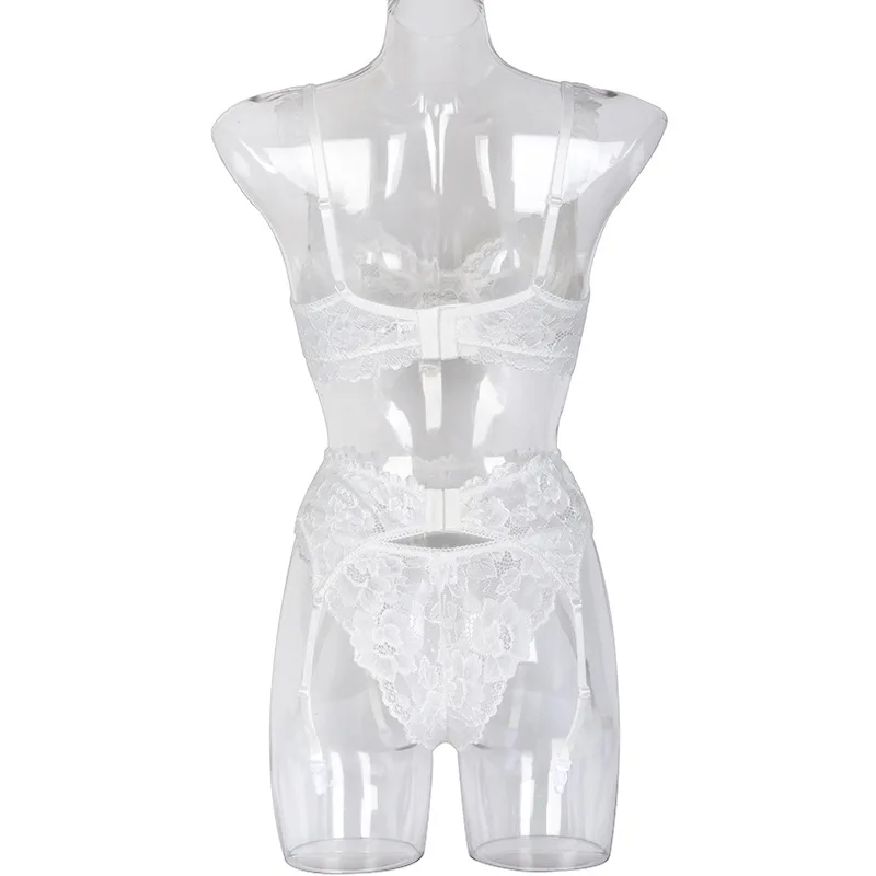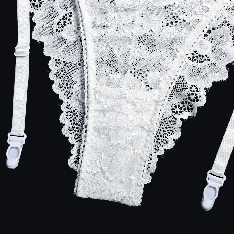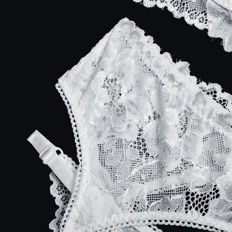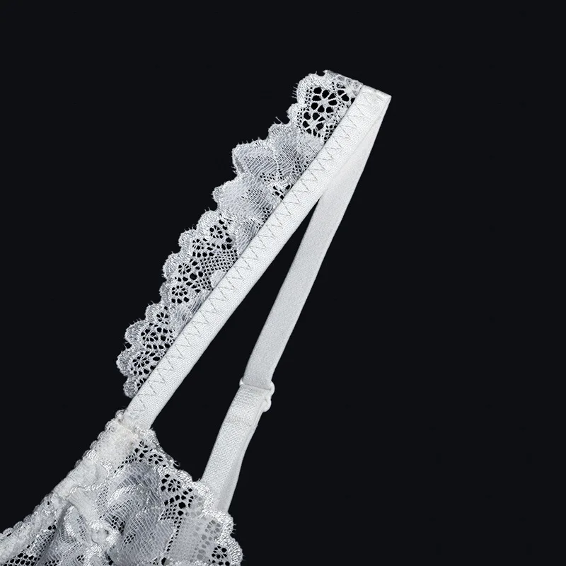 Women Ruffles Shoulder Straps Sexy Lingerie Underwear Erotic Bra and Brief Set with Garters Sensual Lingerie Lace Night Suit