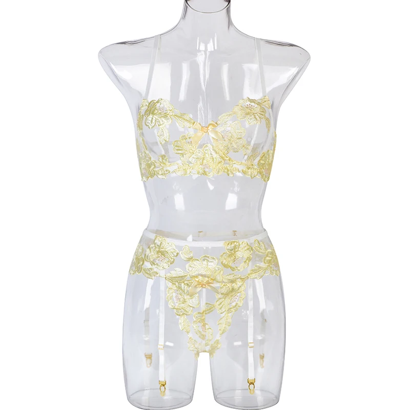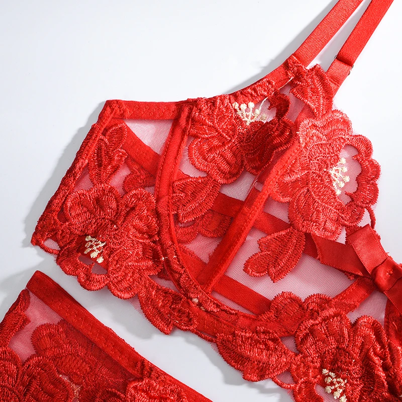 Package: 1 x underwire bra/1 x suspender belt/1 x thong