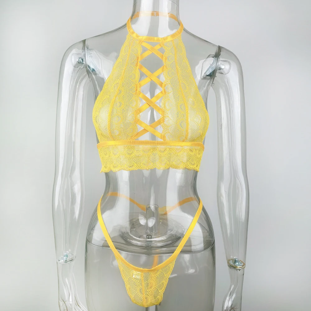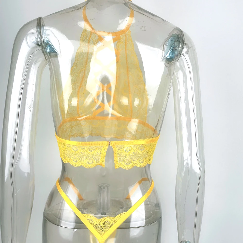 Women Sensual Lingerie Sexy Lingerie Halter Underwear Set Transparent Bra Backless Sex Panties Corset Underwear Set