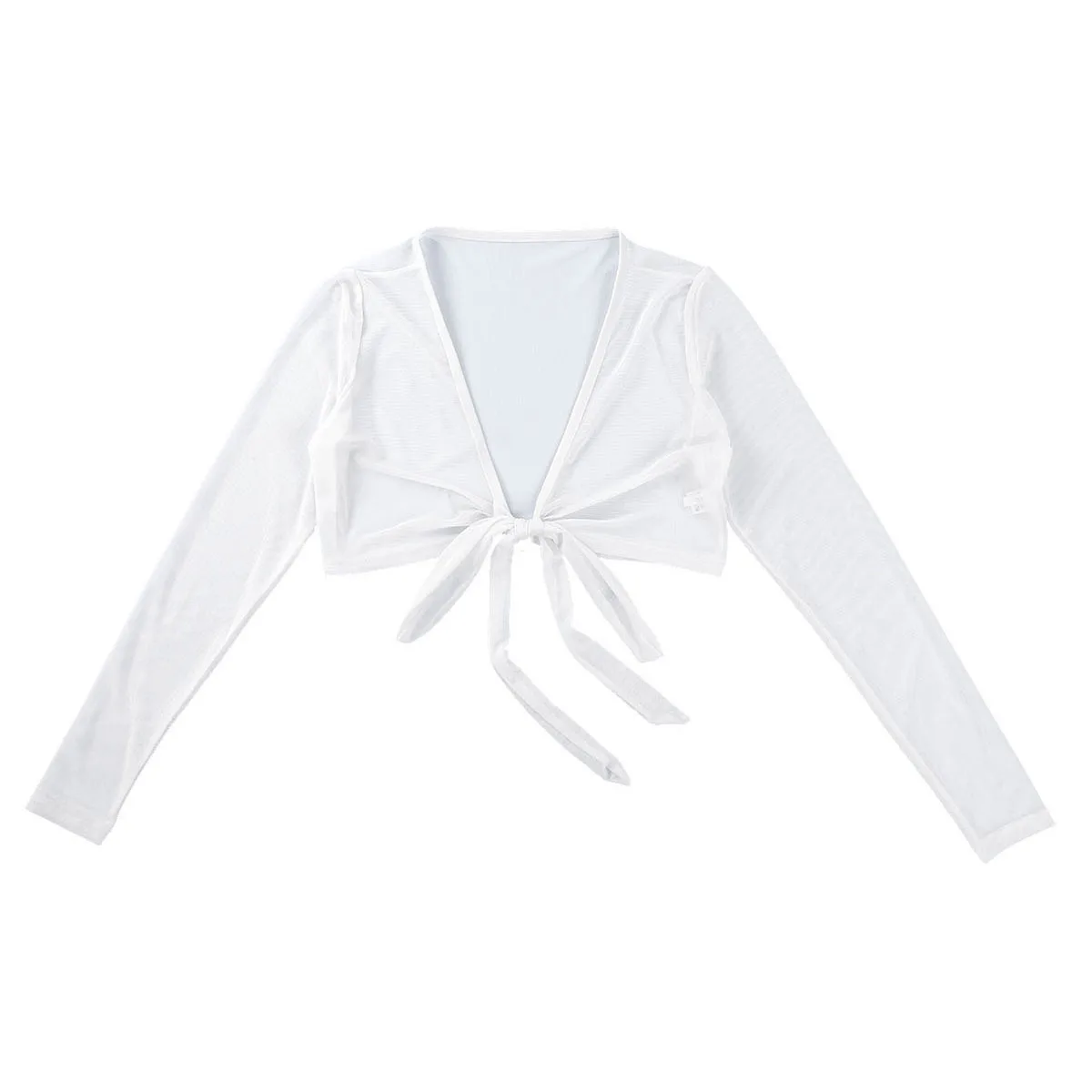 Women Sexy Deep V Crop Tops Long Sleeve Plunge Open Front Tie Up Mesh See Through Sheer Tee Shirt Tank Tops Slim Fit Streetwear