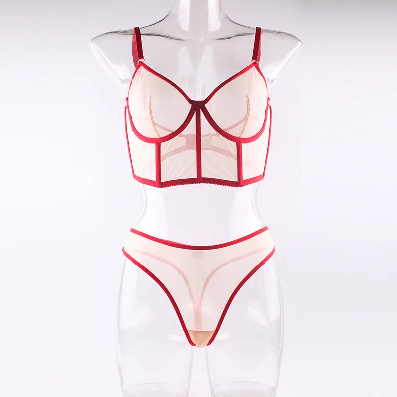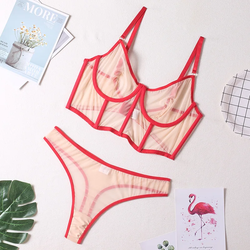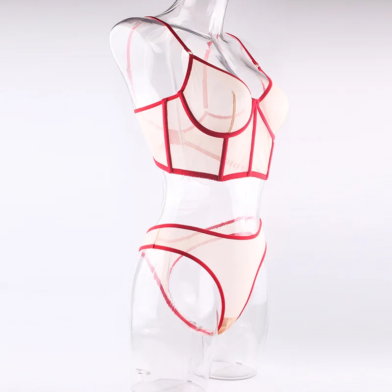 Women Sexy Lingerie 2 Piece underwear Set with Transparent Underwire Bra and Briefs See-Through Panties Erotic Sensual Underwear
