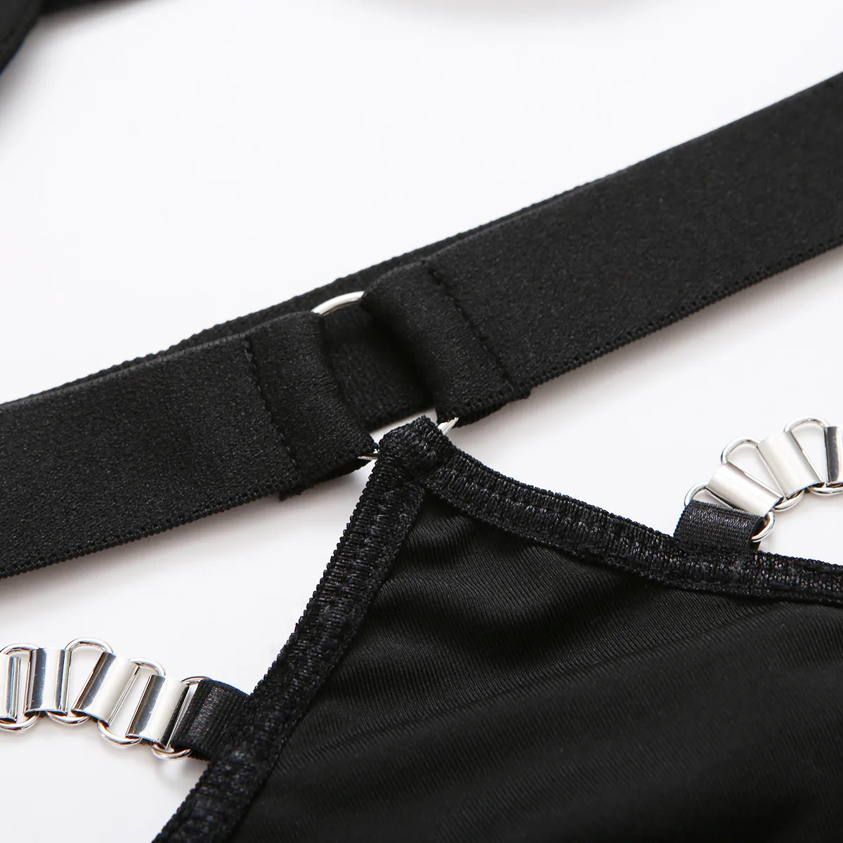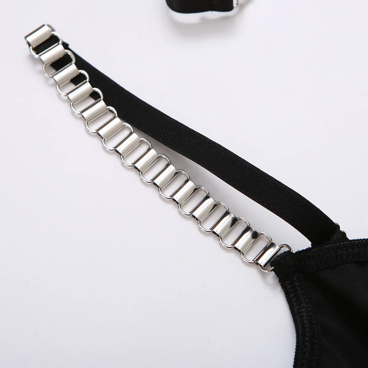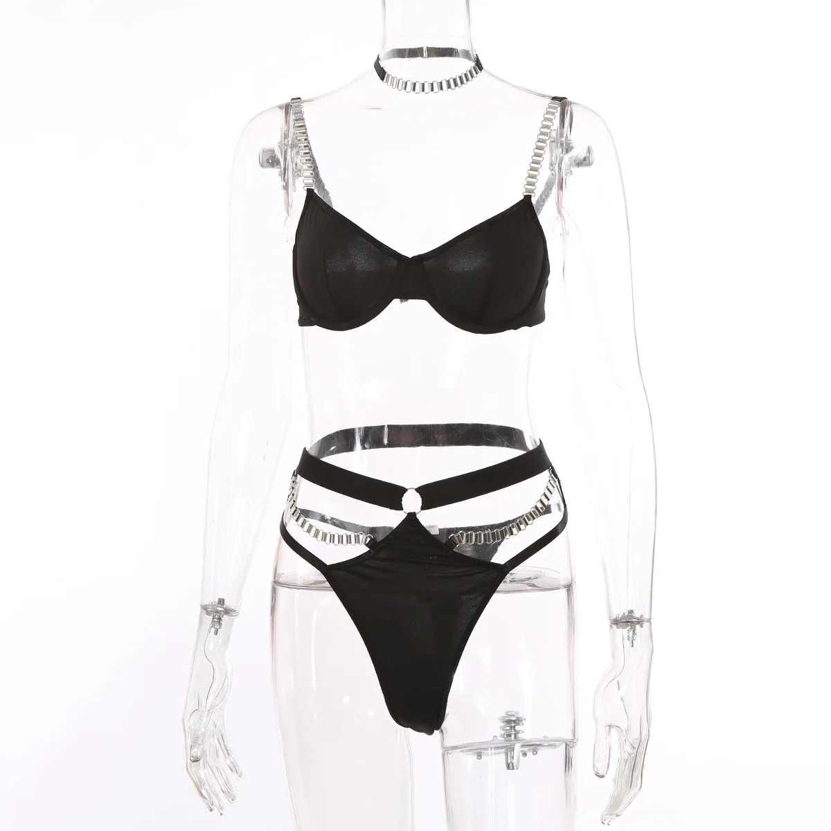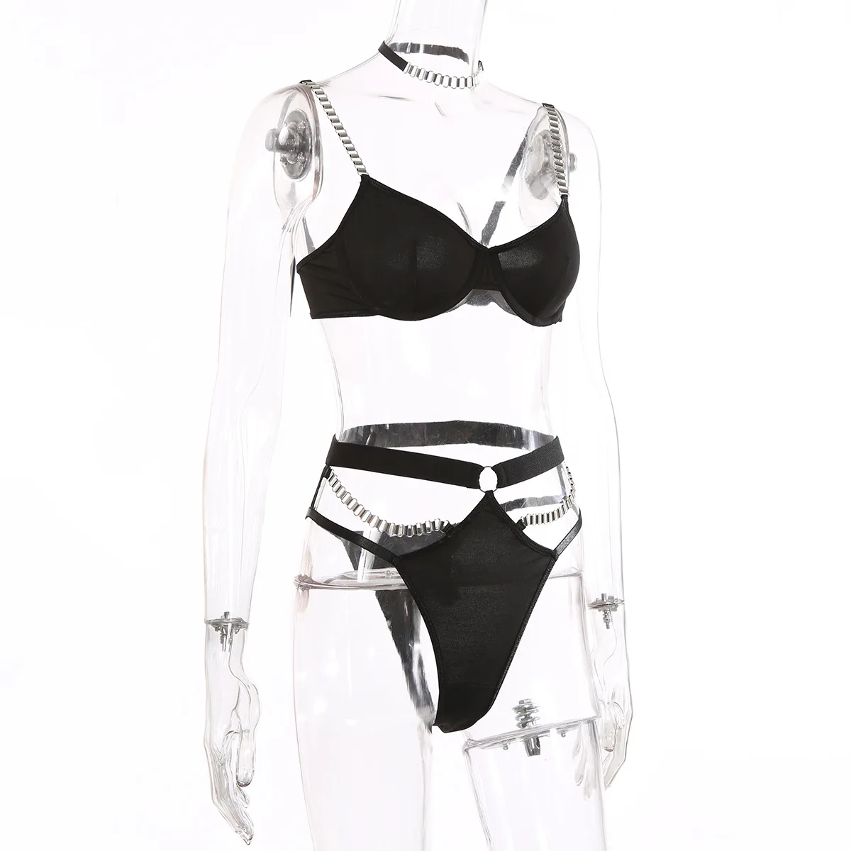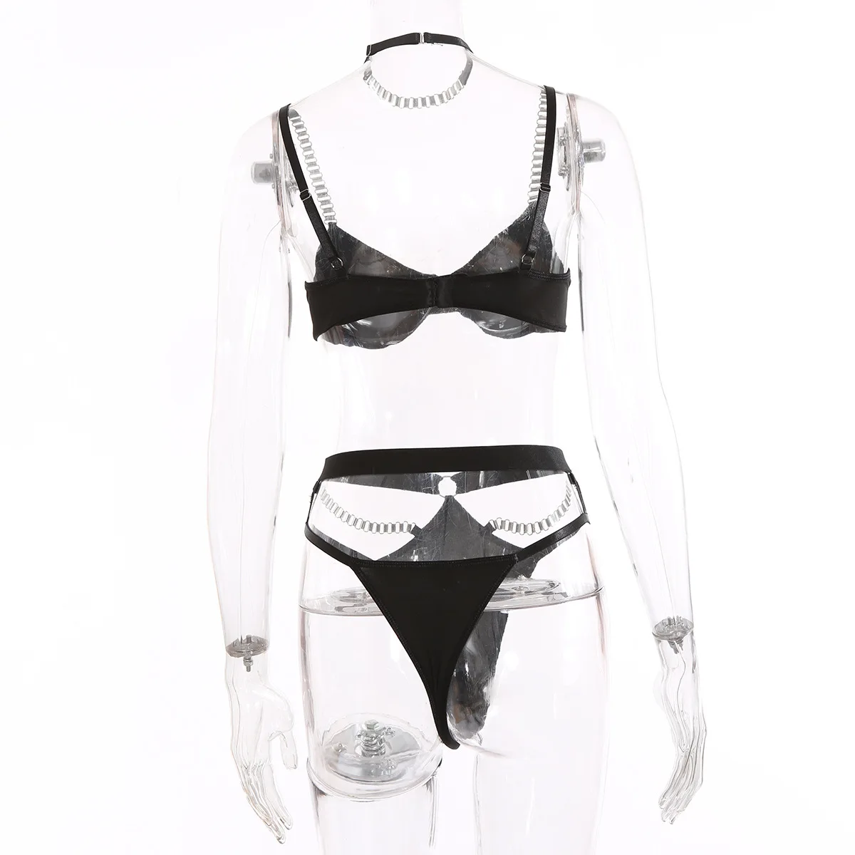 Women Sexy Lingerie 3 Pieces Underwear Set with Metal Choker Bra and Briefs See-Through Panties Erotic Sensual Underwear
