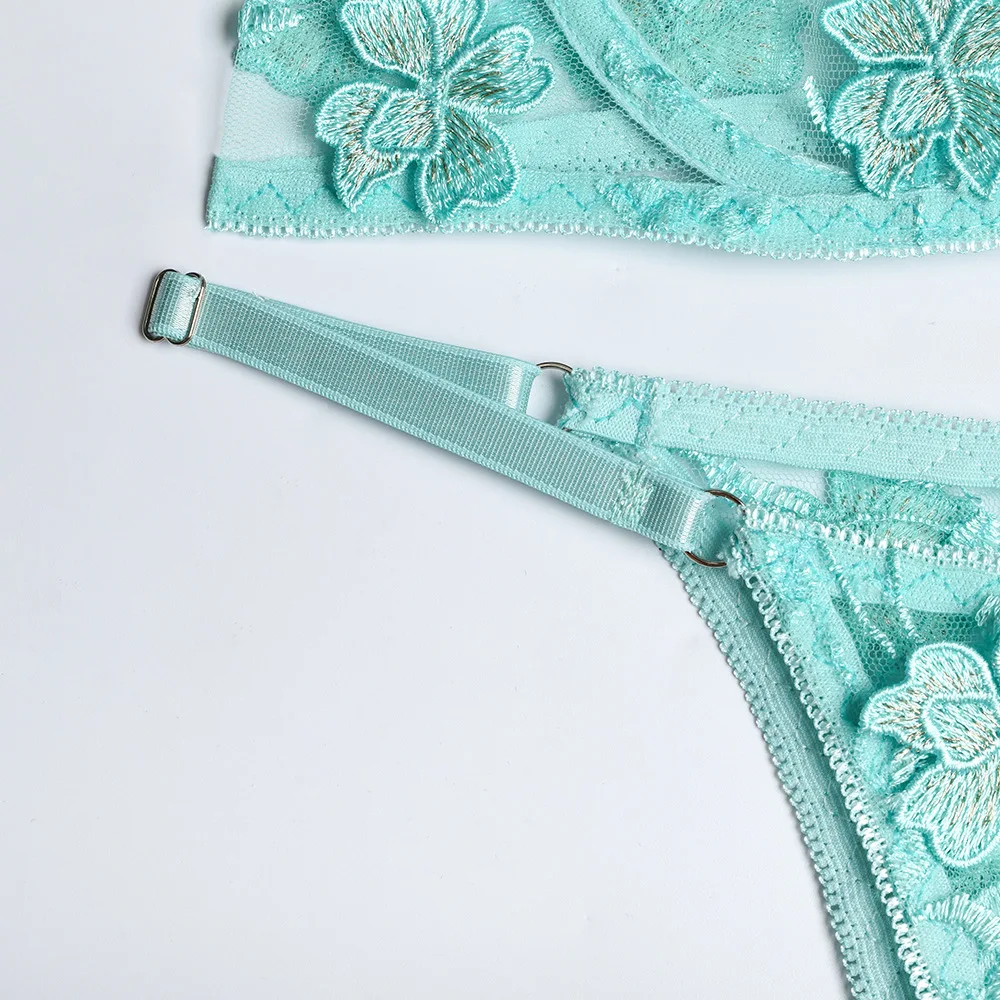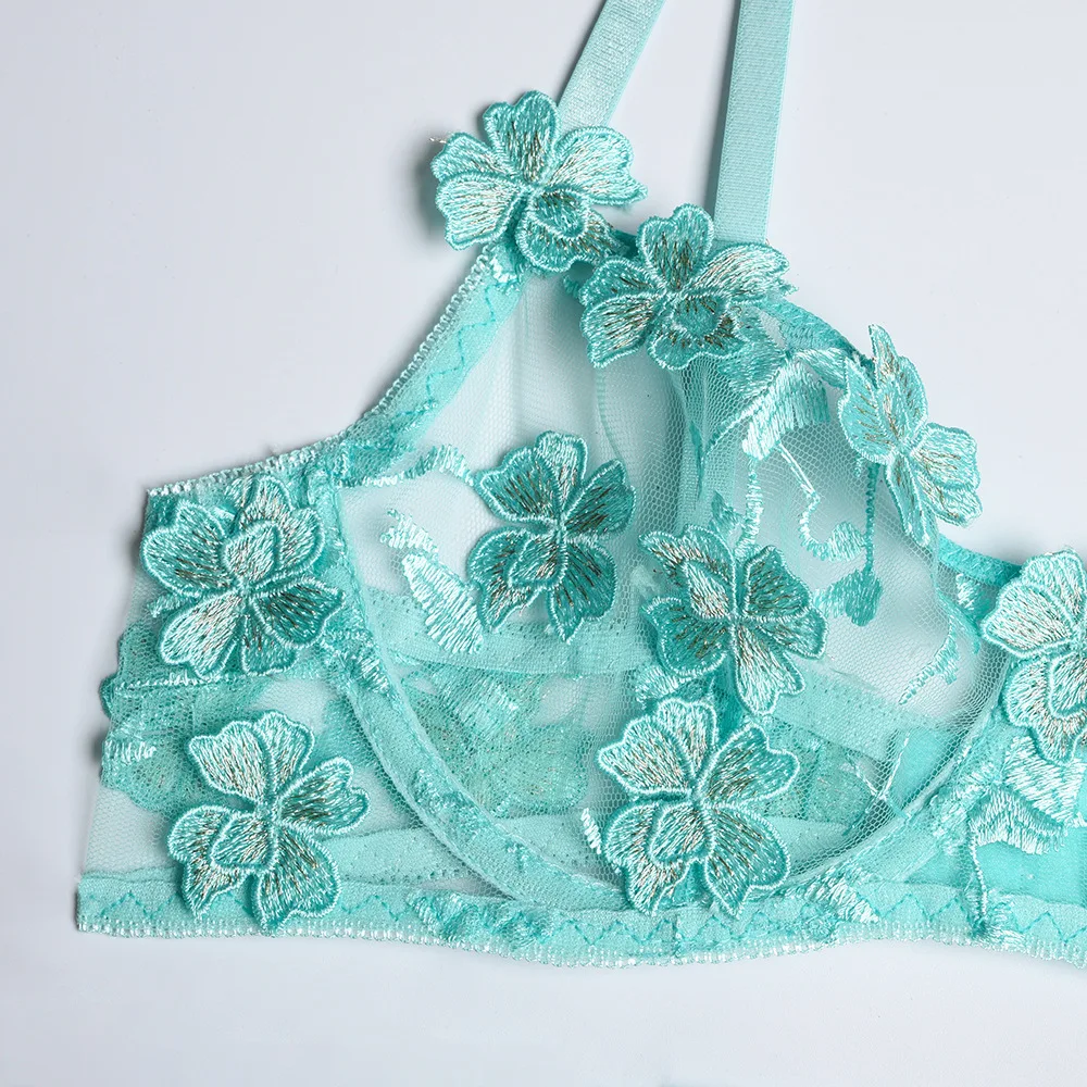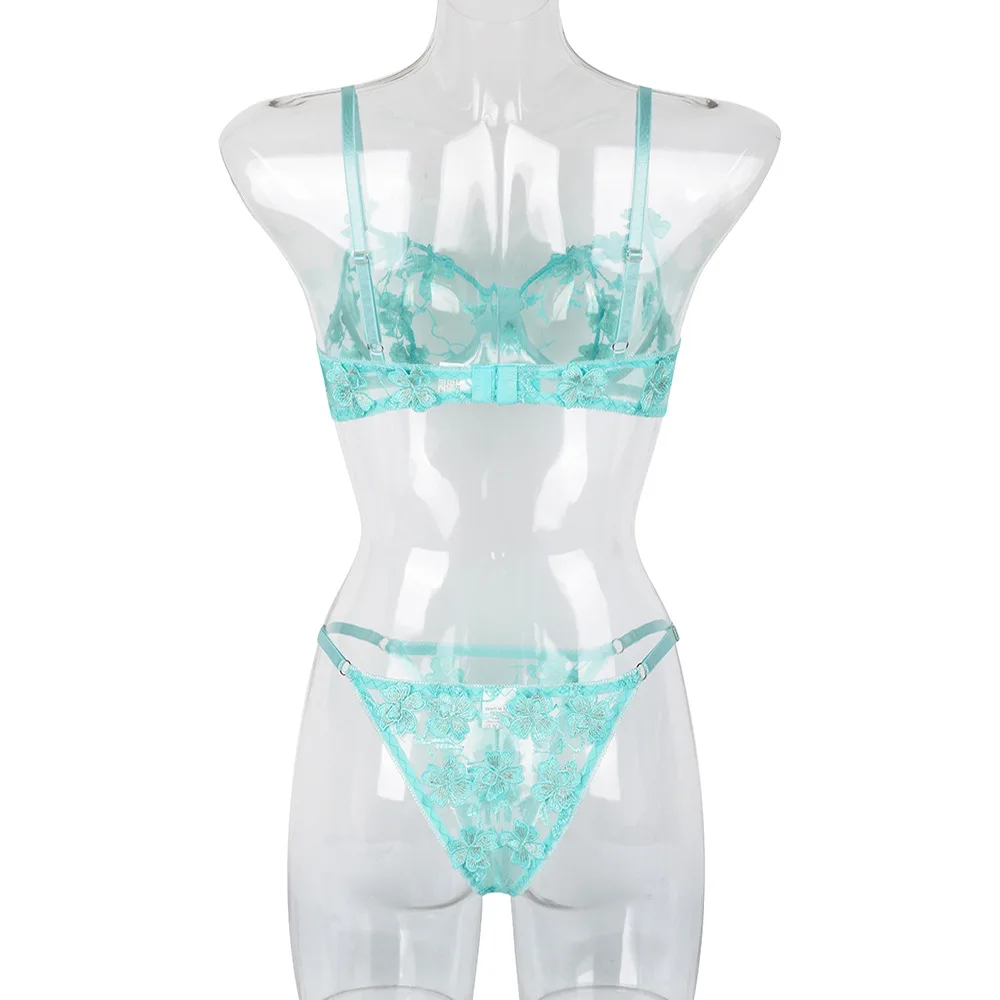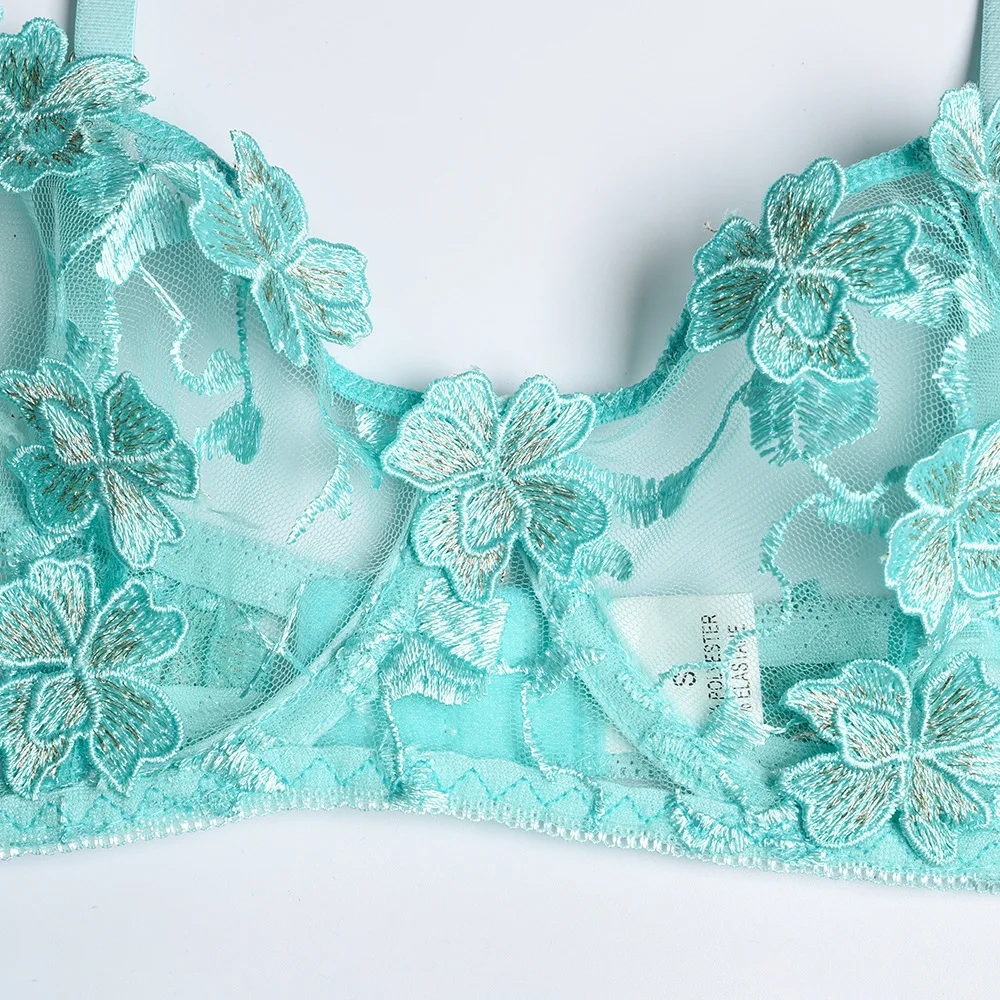 Women Sexy Lingerie Big Floral Embroidery Underwear Erotic Underwire Bra Set Sensual Lingerie Perspective Temptation Underwear