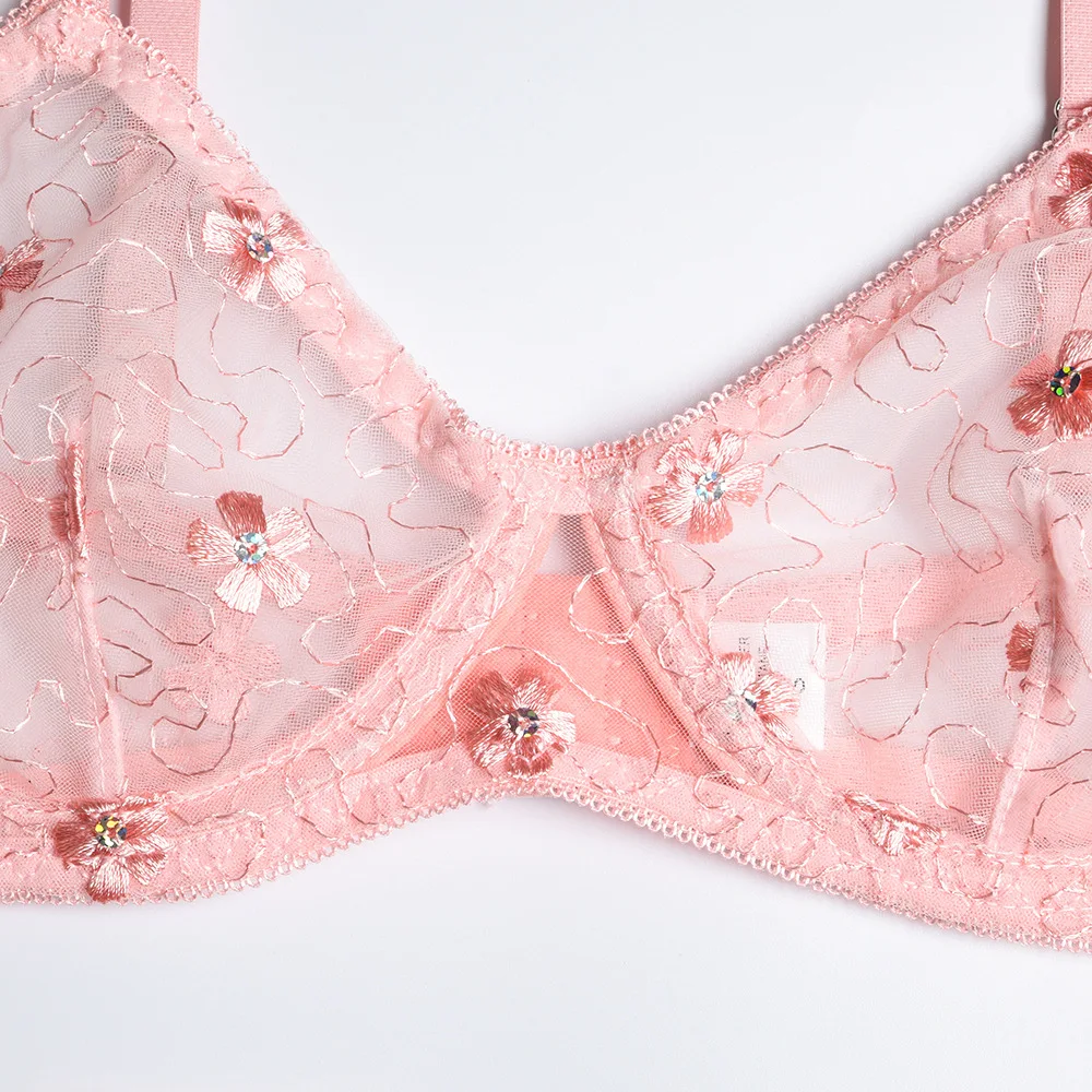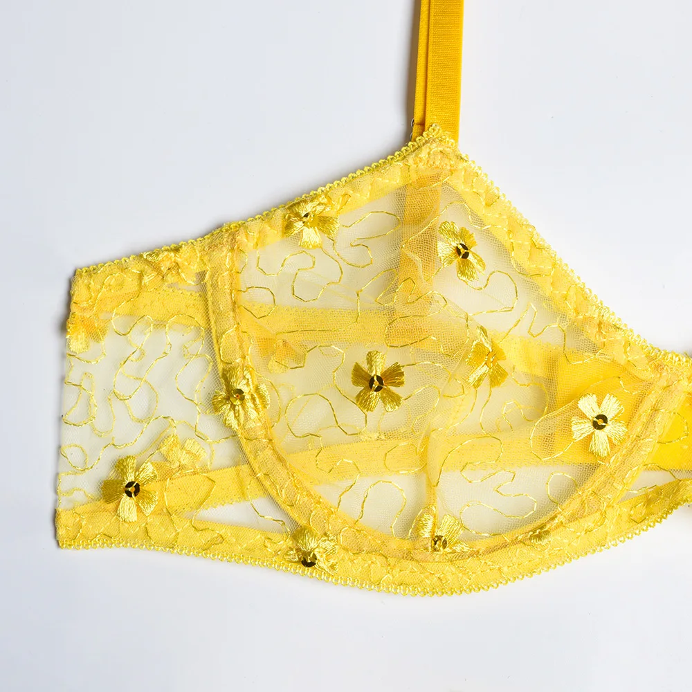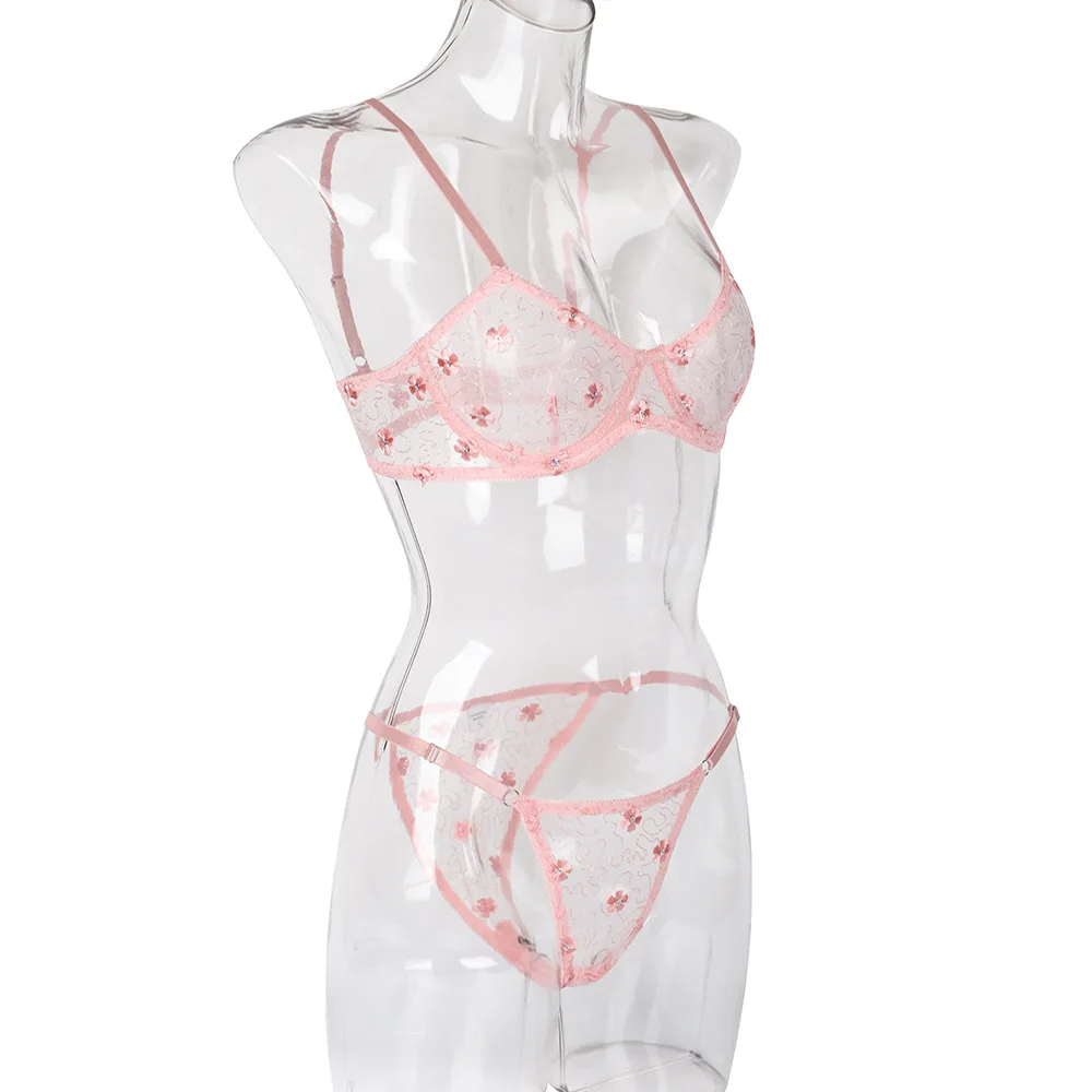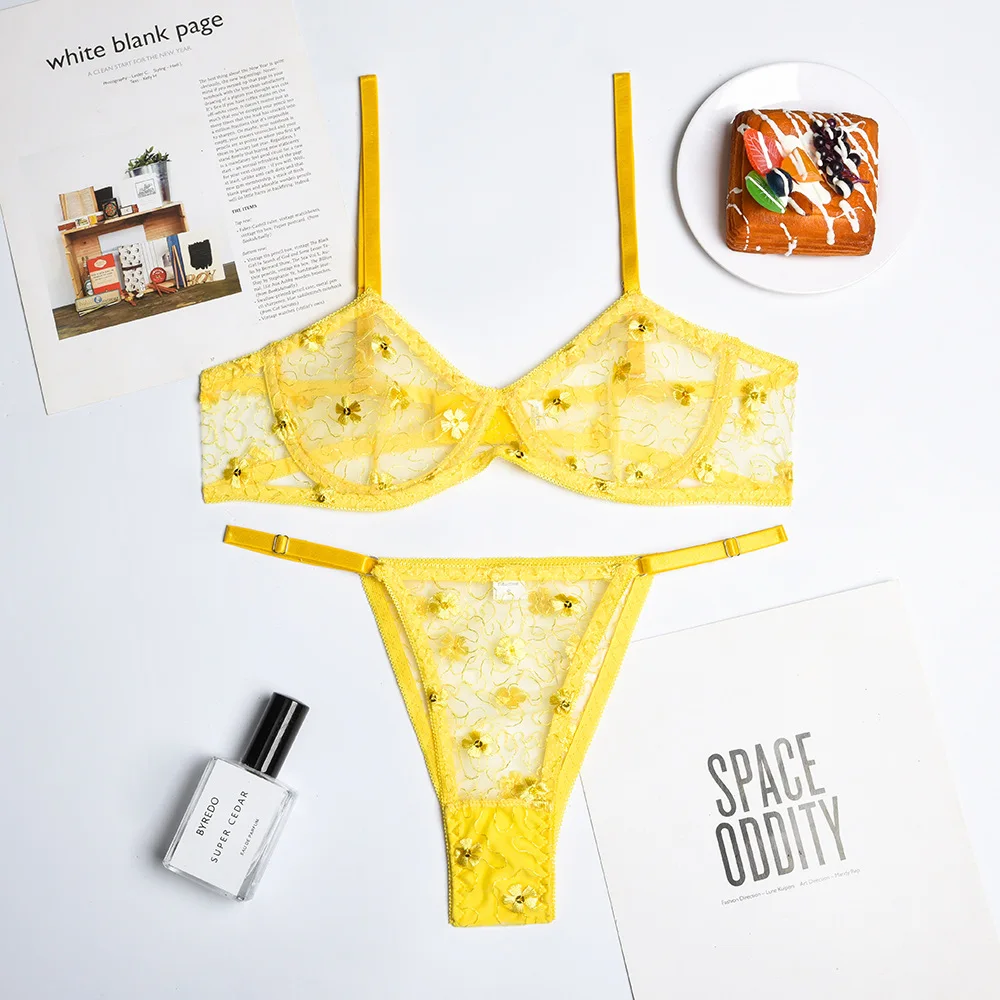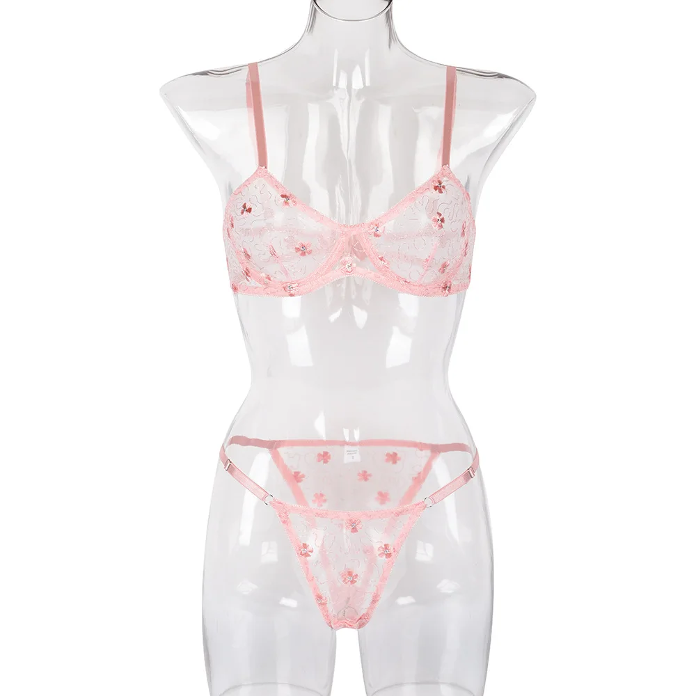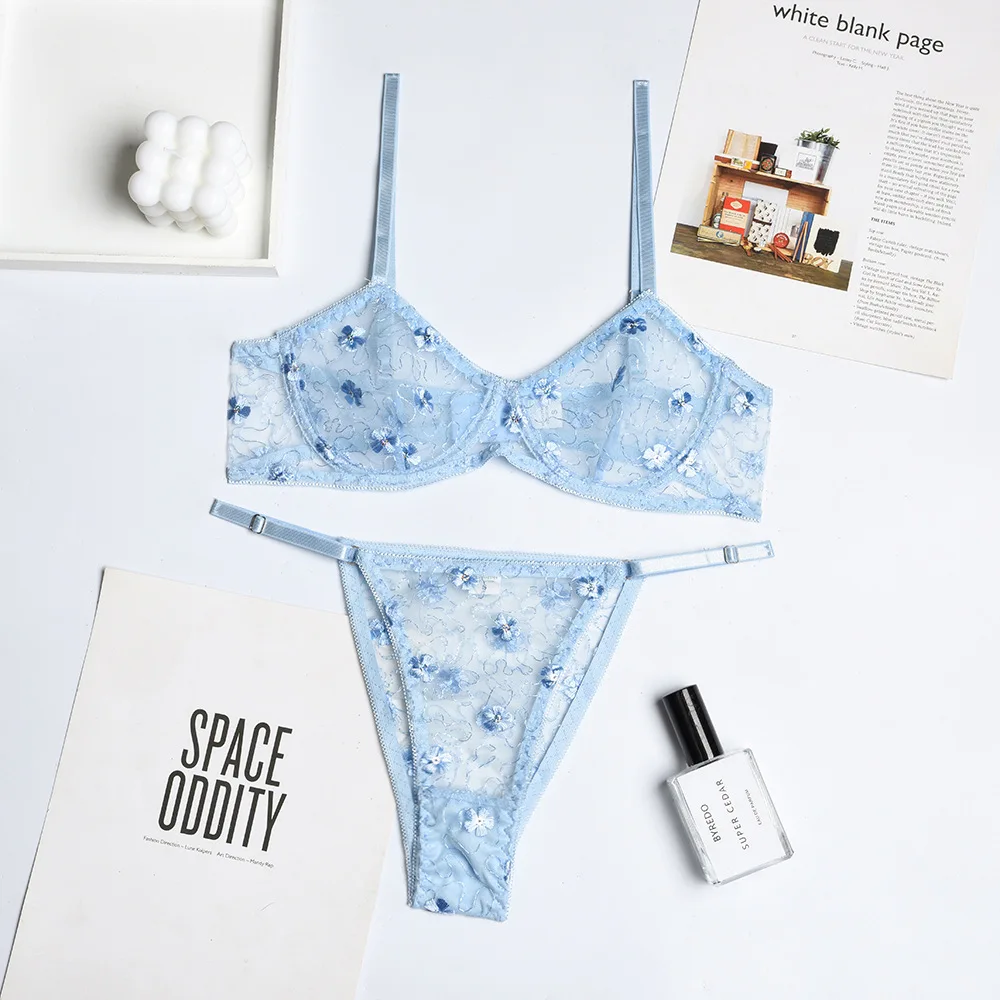 Women Sexy Lingerie Floral Embroidery Underwear Set Push up Bra Sensual Lingerie See Through Valentines Day Exotic Costumes