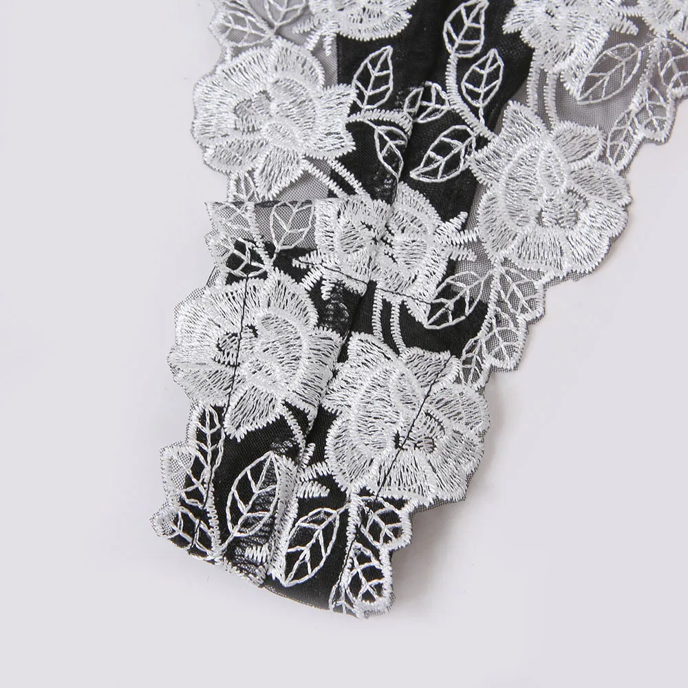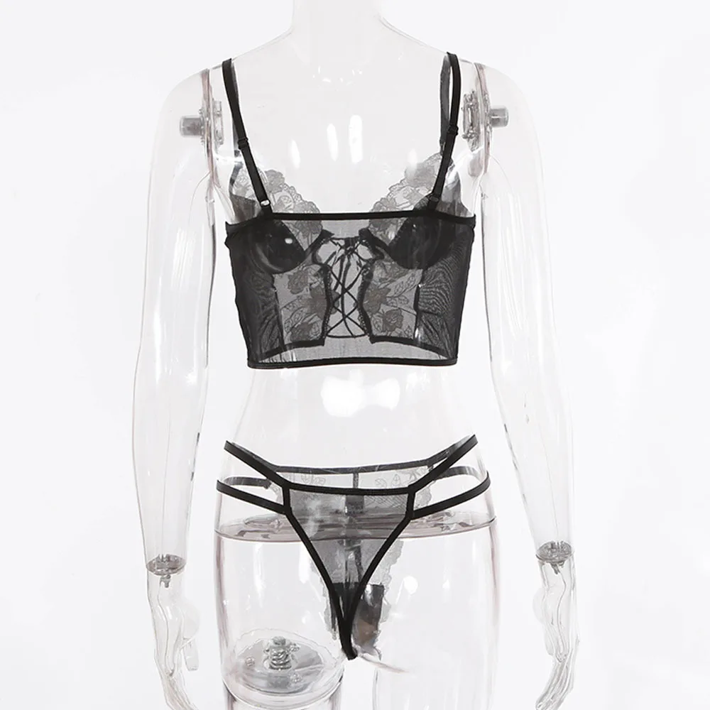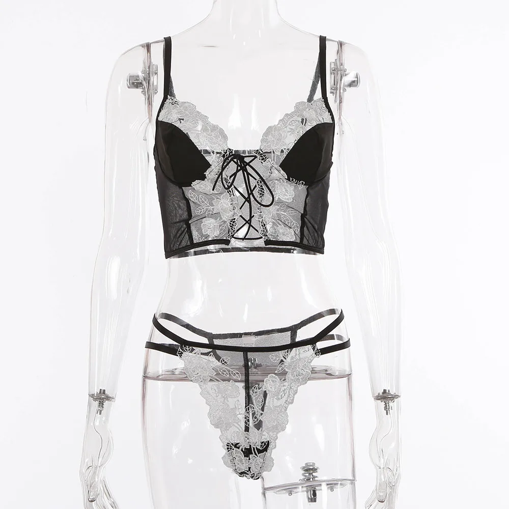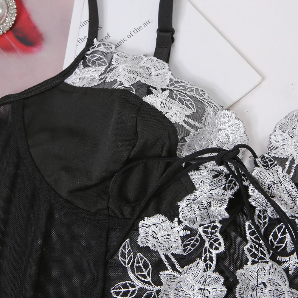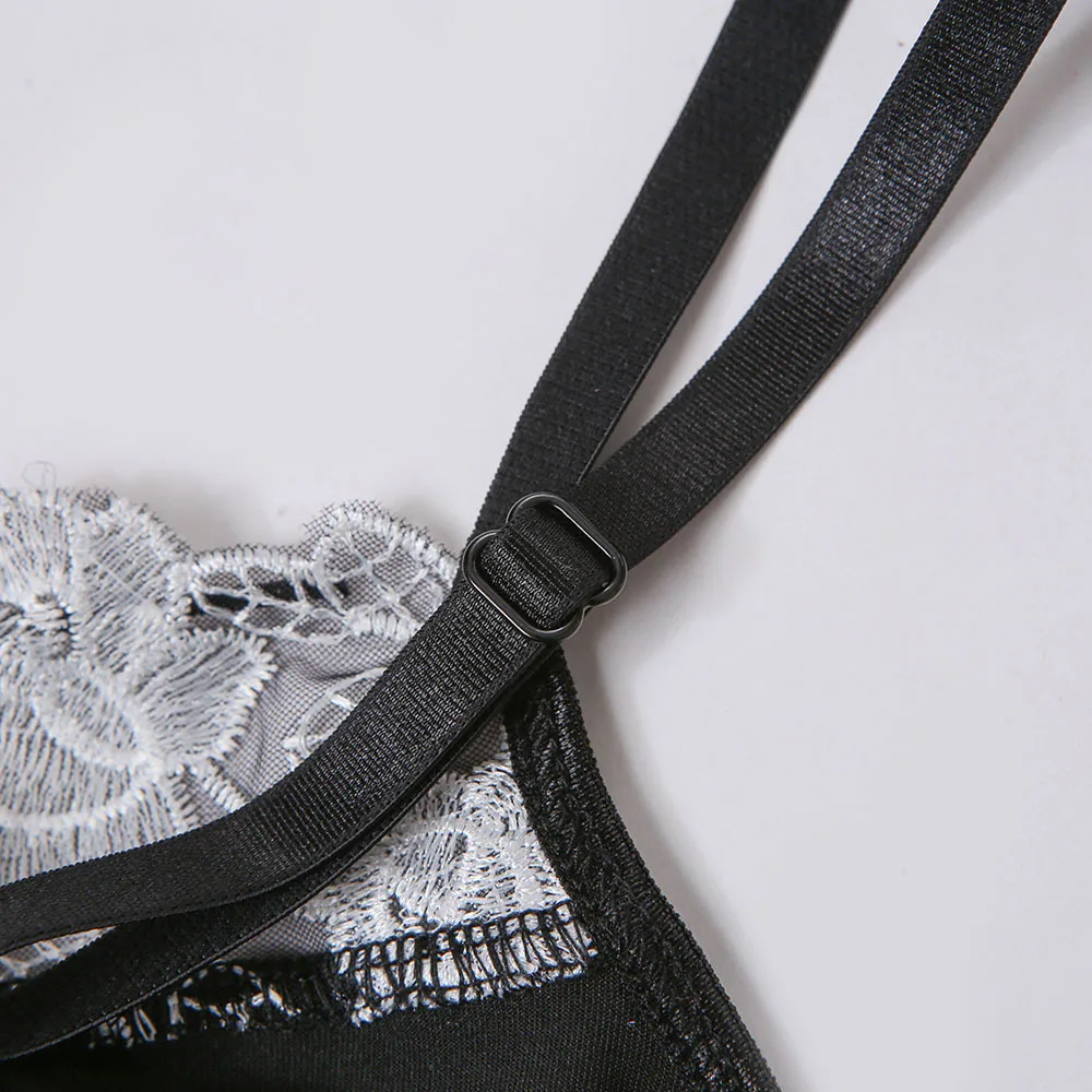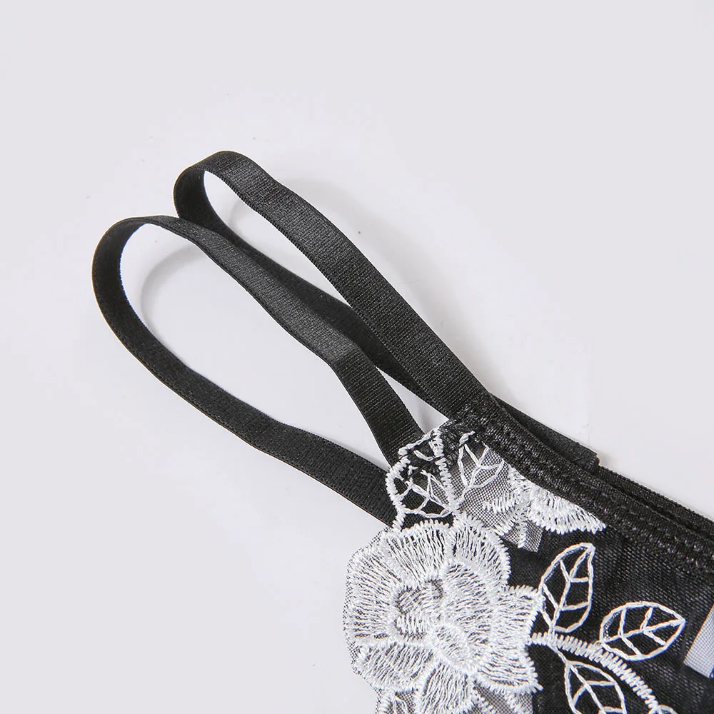Women Sexy Lingerie Flower Embroidery Underwear Erotic Push Up Bra and Brief Set Garters Belt Sensual Lingerie Exotic Underwear