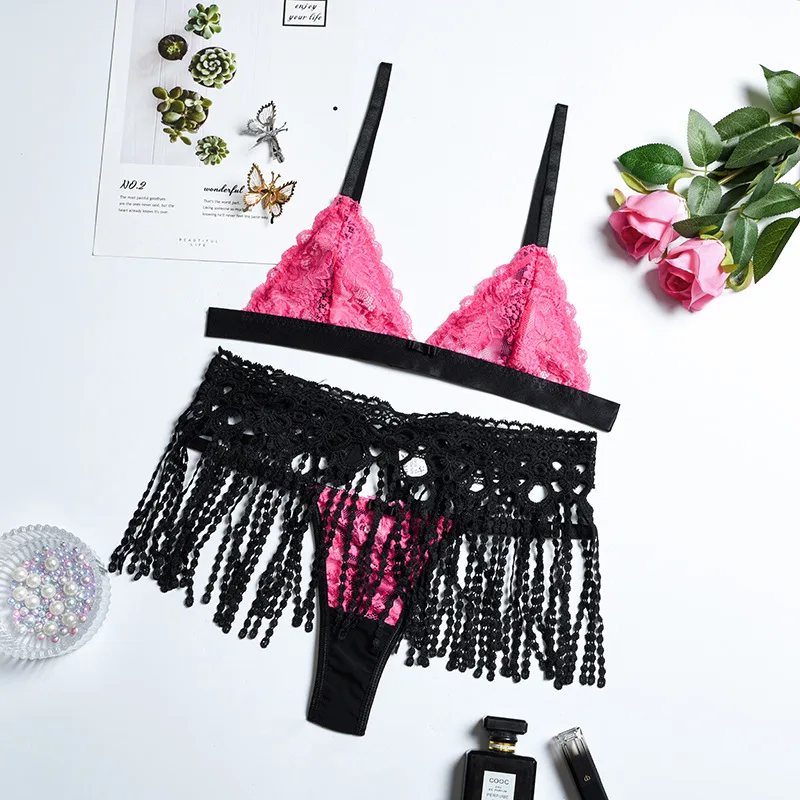 Women Sexy Lingerie Lace Underwear Erotic Push Up Bra and Brief Set Garters Belt Sensual Lingerie Exotic Underwear