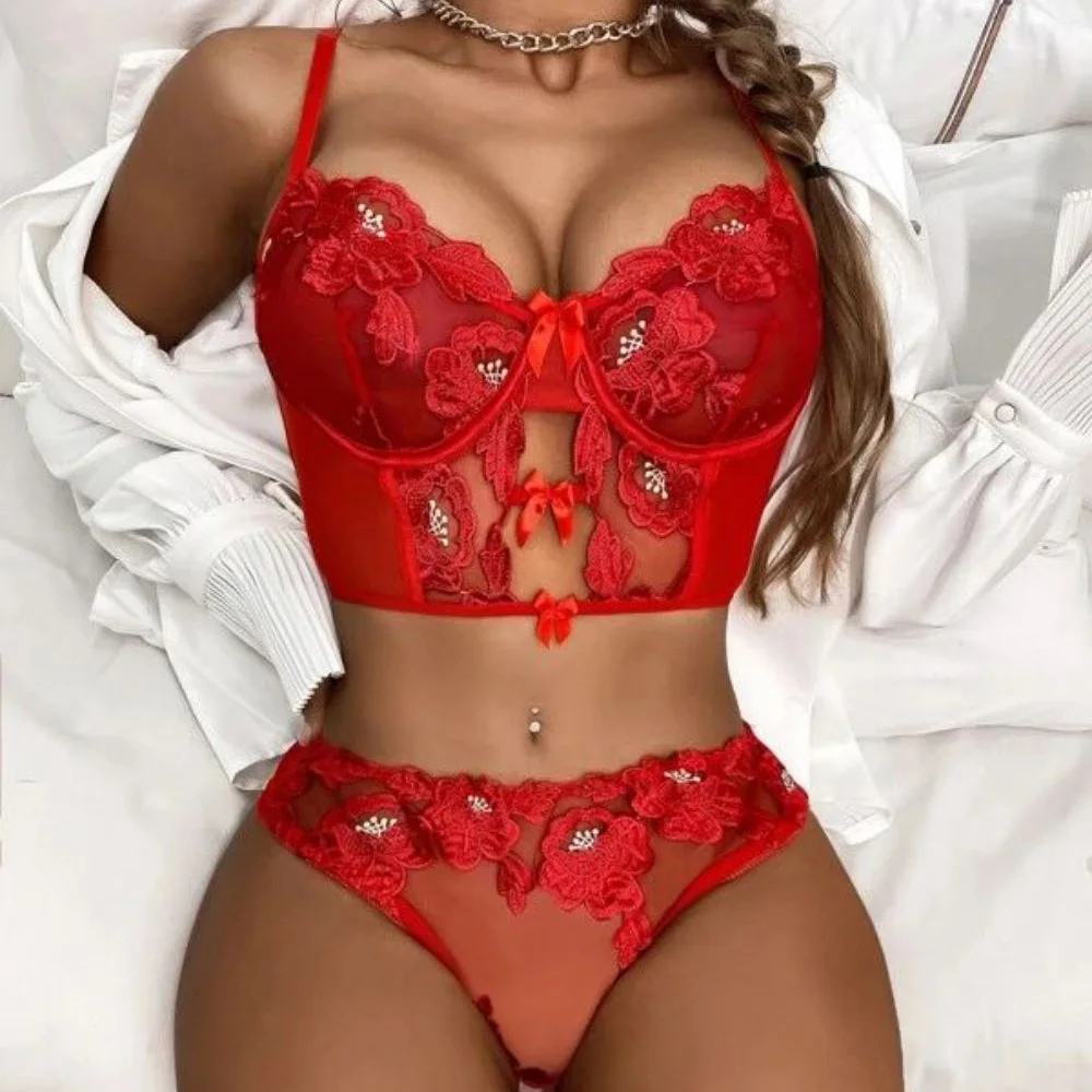 Women Sexy Lingerie Underwear Set Transparent Floral Embroidery Push Up Bra Panty Erotic Costumes Temptation Sensual Underwear