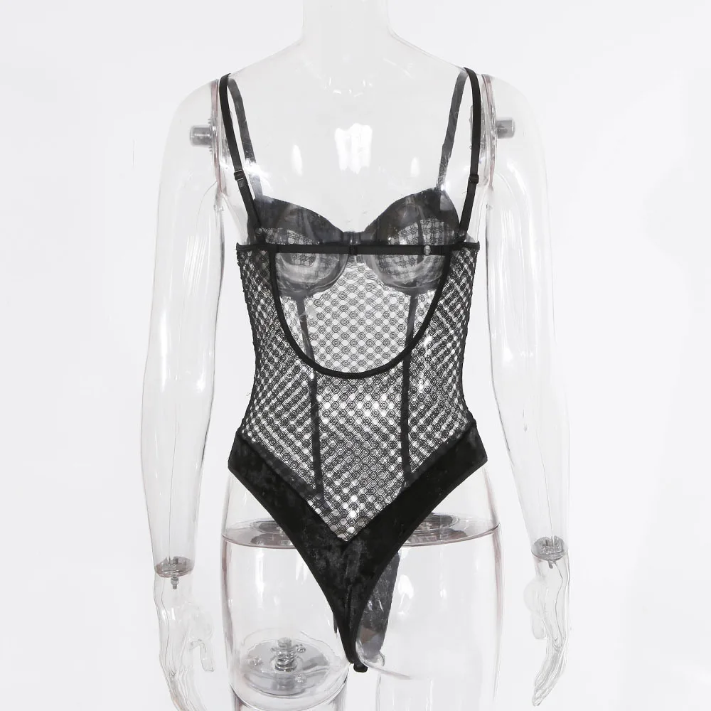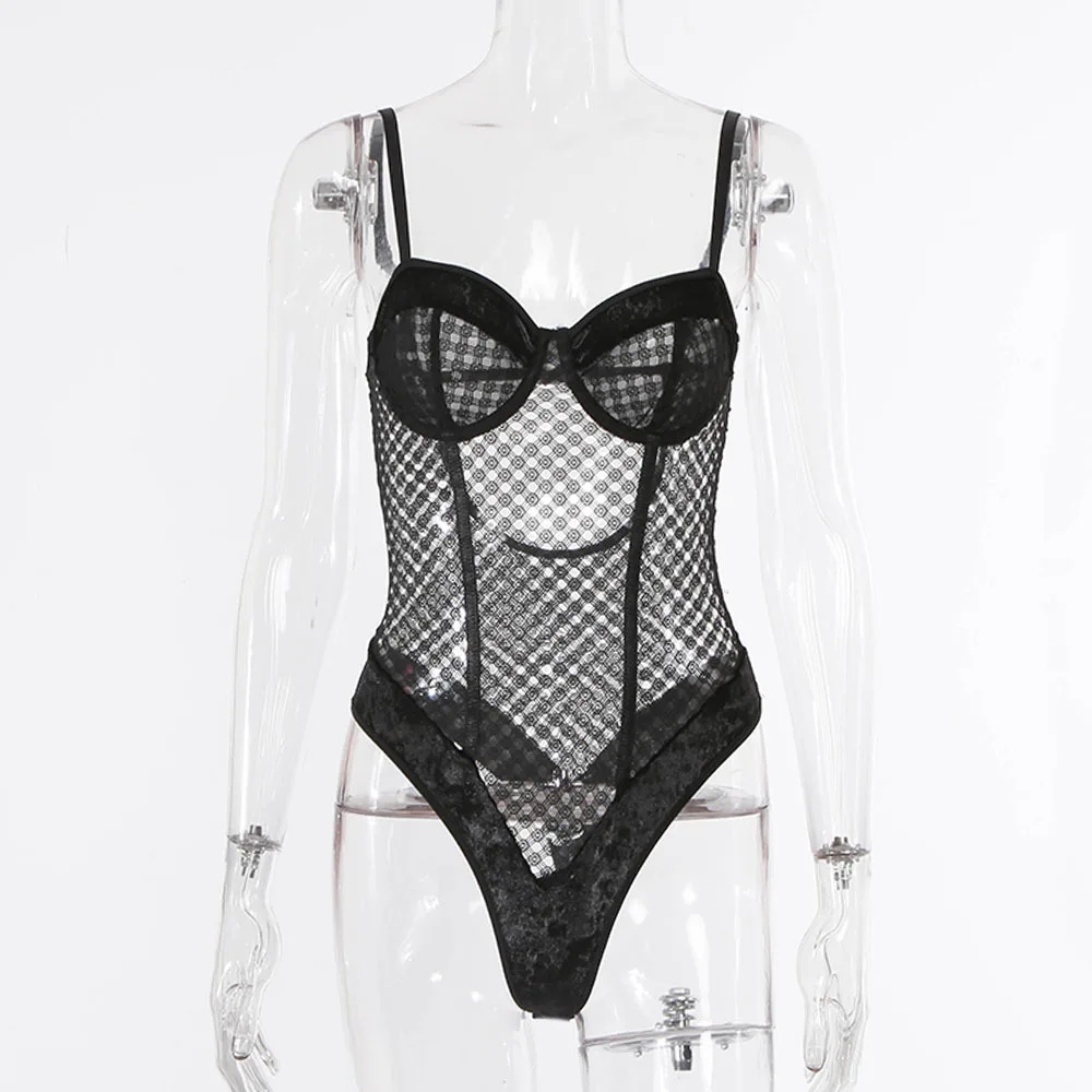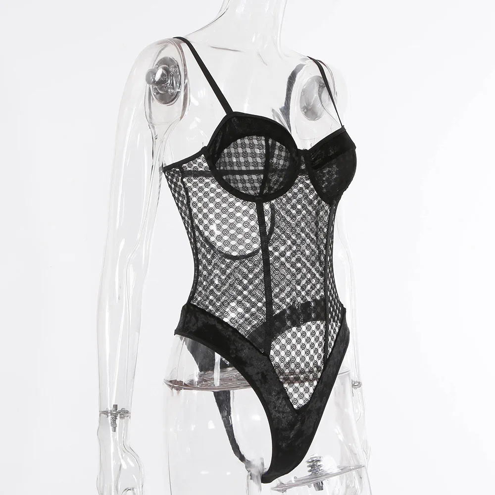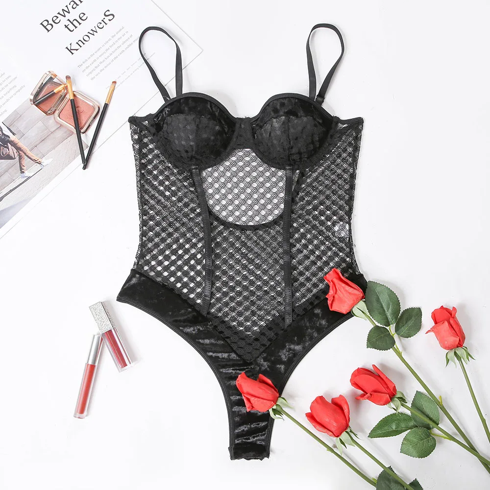 Women Sexy Sensual Lingerie Bodysuit Underwear Erotic Lace Fetish Hollow Out Mesh Gathered Bra Bondage Jumpsuit Exotic Costumes