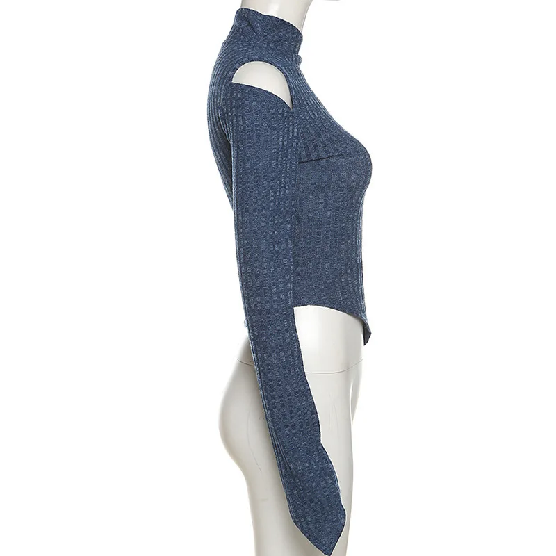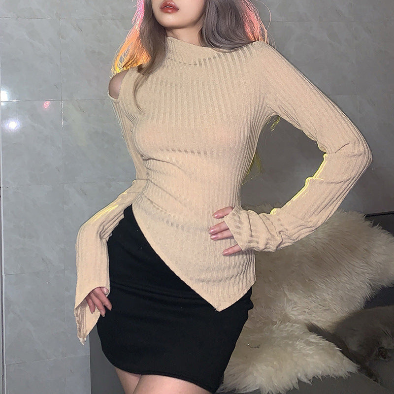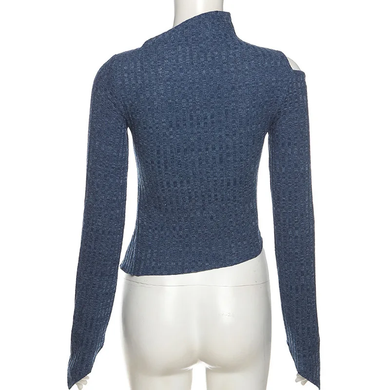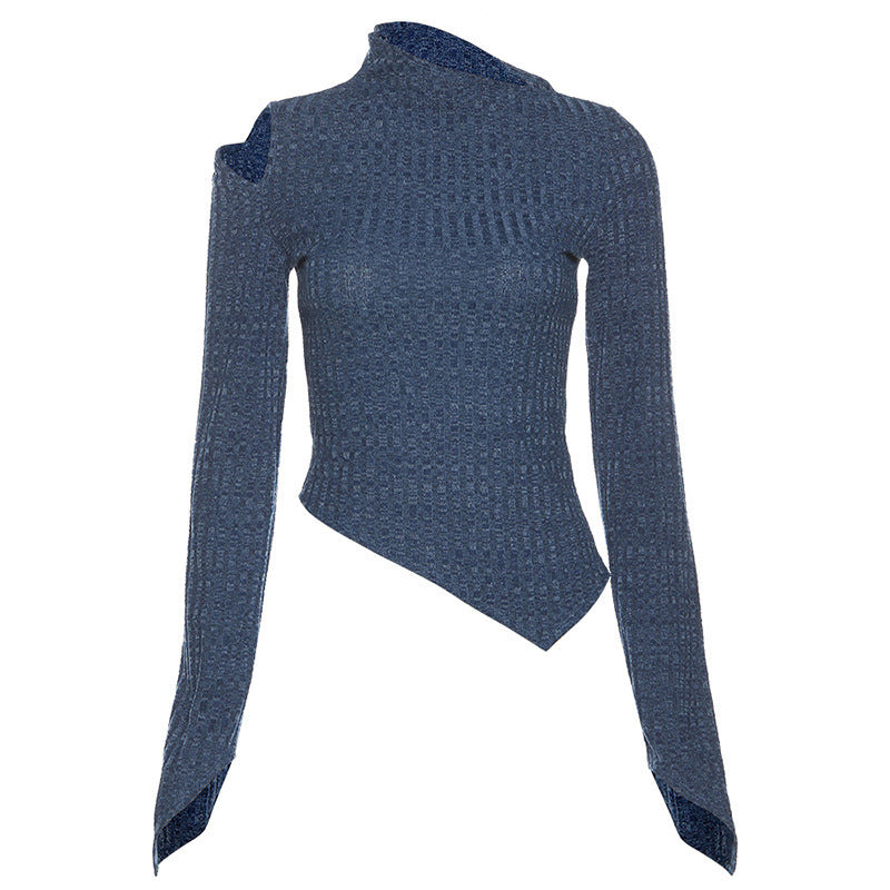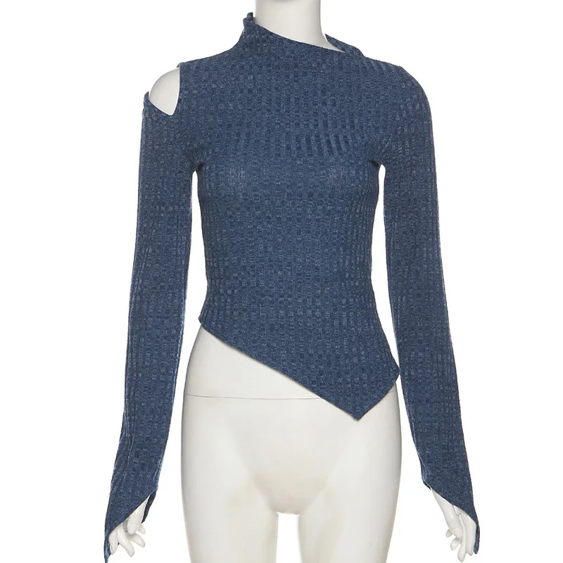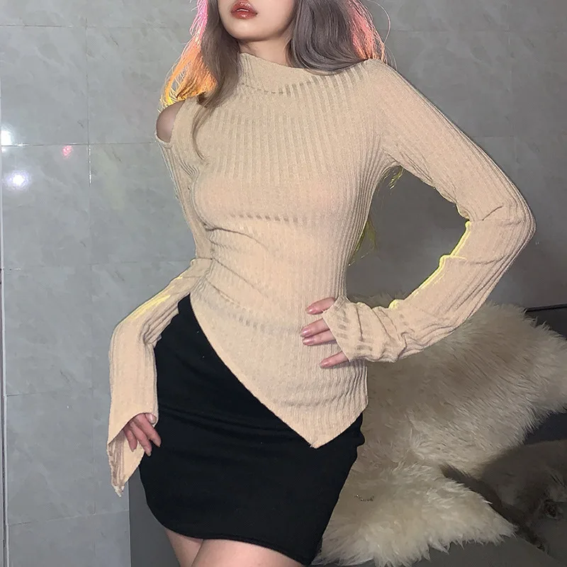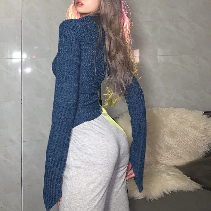 Y2K 2022 Spring Fall Fashion Solid Irregular Long Sleeved Knitted Top Bodycon Casual Women's Clothes Rave Festival Streetwear