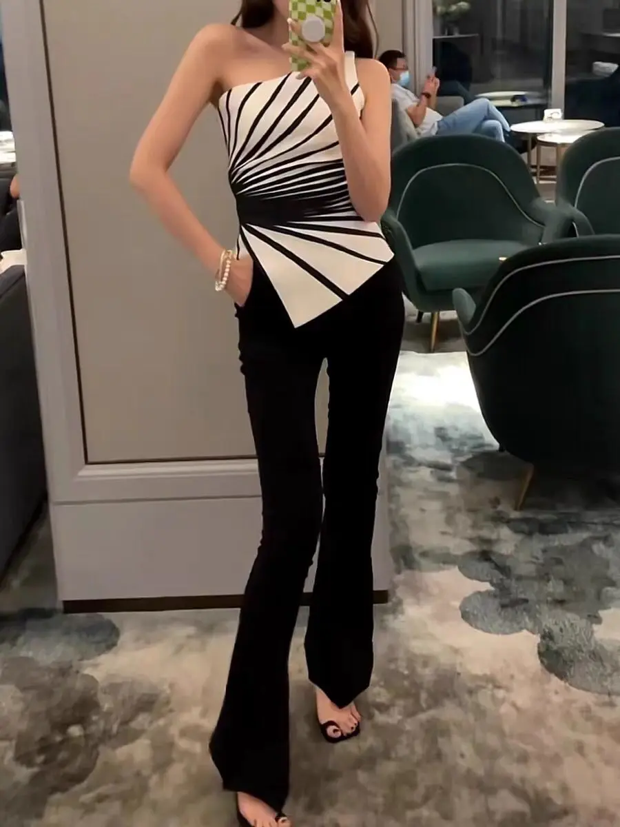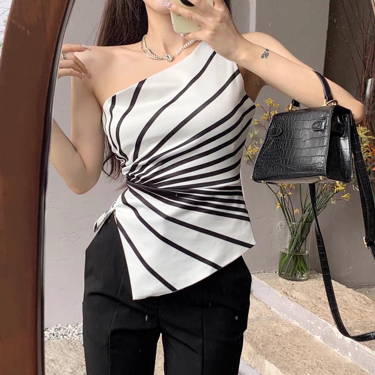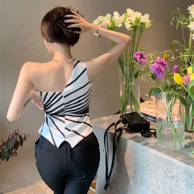 Y2k clothes 2022 summer Fashion Sleeveless Short women's tank top Temperament irregular lines shoulders Top female chic