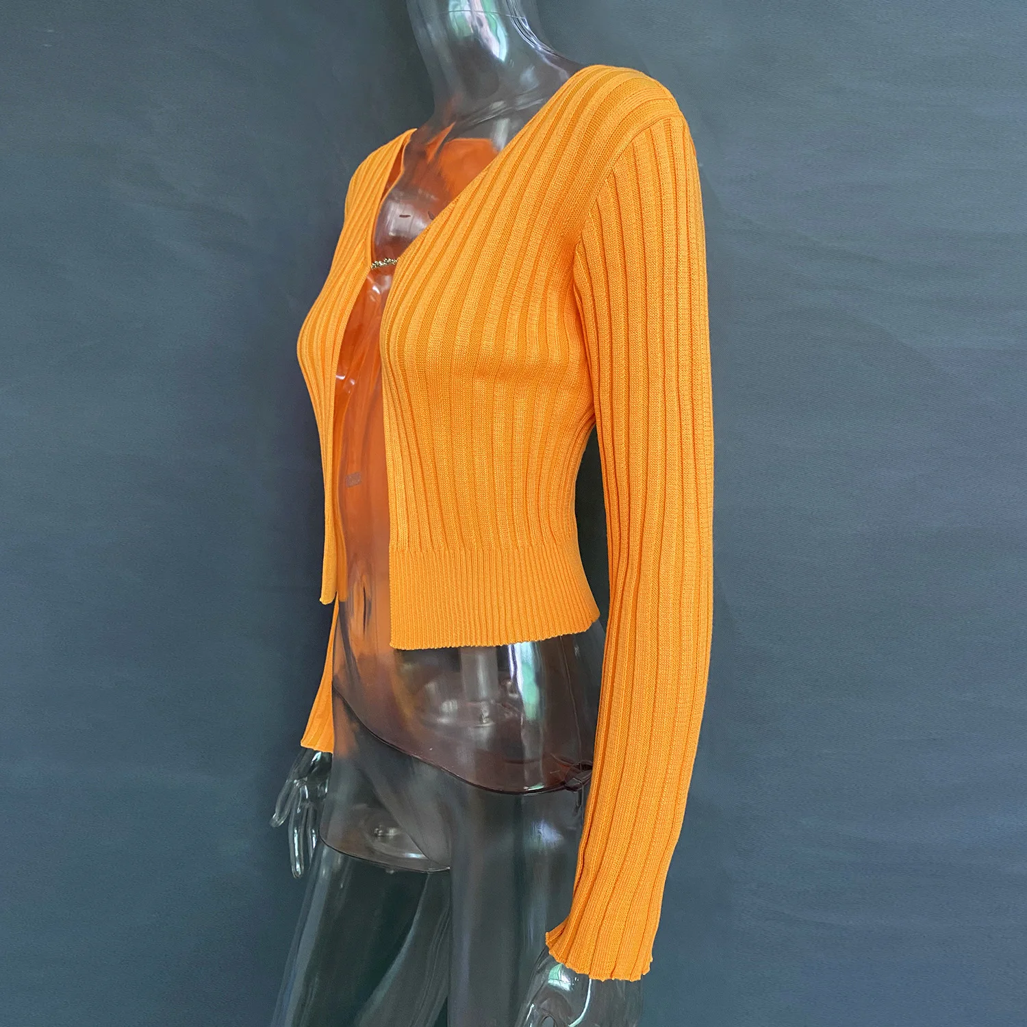 Y2K Fashion 2022 Spring Fall Corset Top Knit Bodycon Sexy Cardigan T-Shirt Long Sleeves For Women's Clothing Tshirt Streetwear