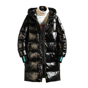 • Winter 2023 Warm Light Long Parkas Waterproof Jacket Men Large Size Thicken Smooth Shiny Hooded Cotton-padded Coats Men