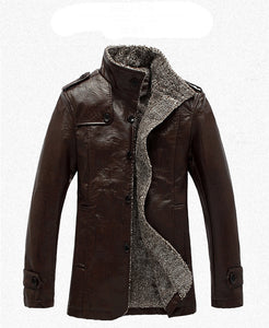 • Men's Fashion Leather Jacket Autumn and Winter Paragraph Padded Pu Big Leather Jacket plus size black Zipper cardigan Jackets