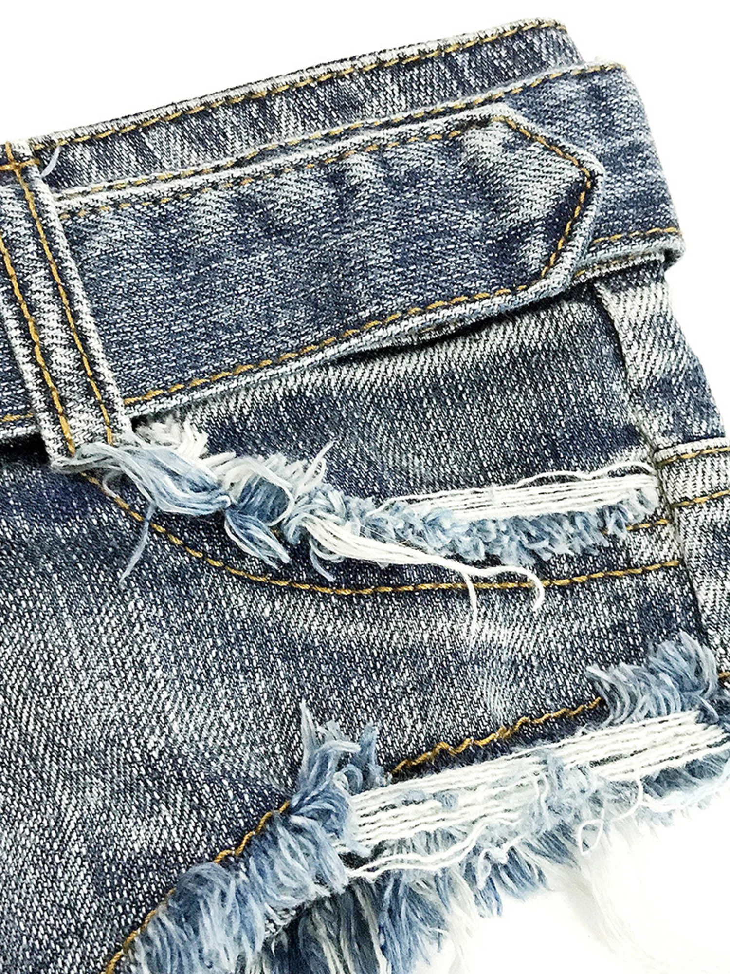 Frayed raw hem, come with adjustable denim belt, easy to adjust the size to meet your need.
