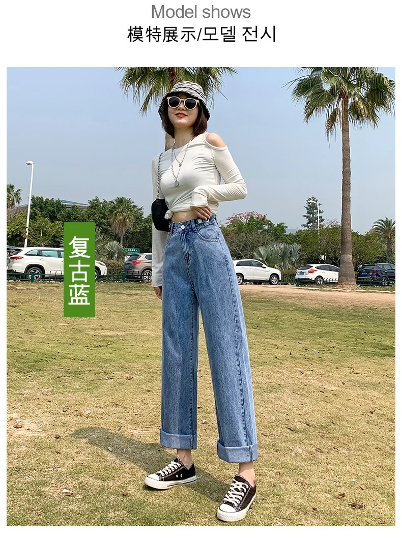 Women's Wide-Leg Jeans Summer 2021 New Spring And Autumn Small High Waist Slimming And Straight Loose Drooping Mop Pants Denim