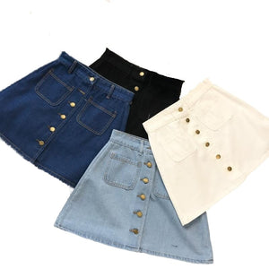 New 2021 Spring Summer TRF Womens ALine Jeans Short Denim Mini Skirt Button Off Double Pockets Harajuku Sexy Y2K Falda Skirts