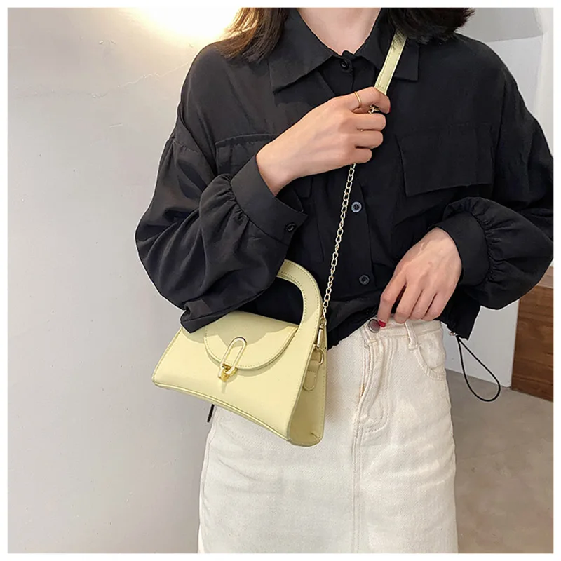 Bolsa de mão de luxo com alça curta, em couro pu, cor sólida, para mulheres, shopper de tendências, bolsa de ombro mensage