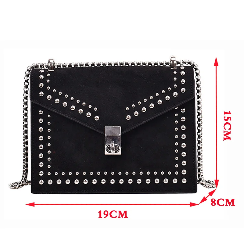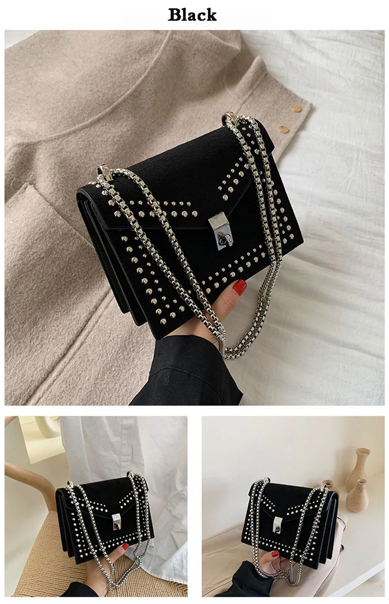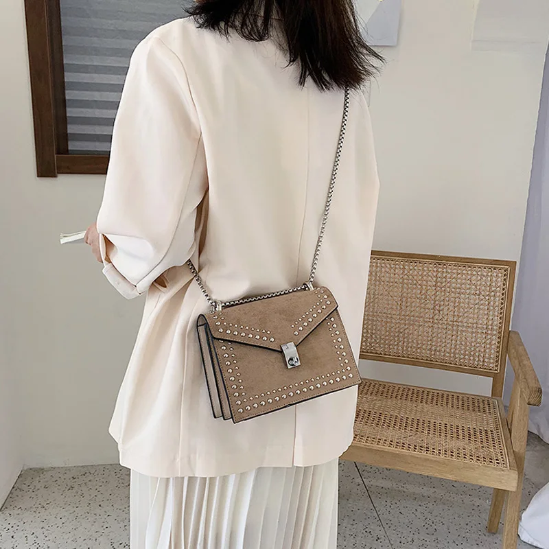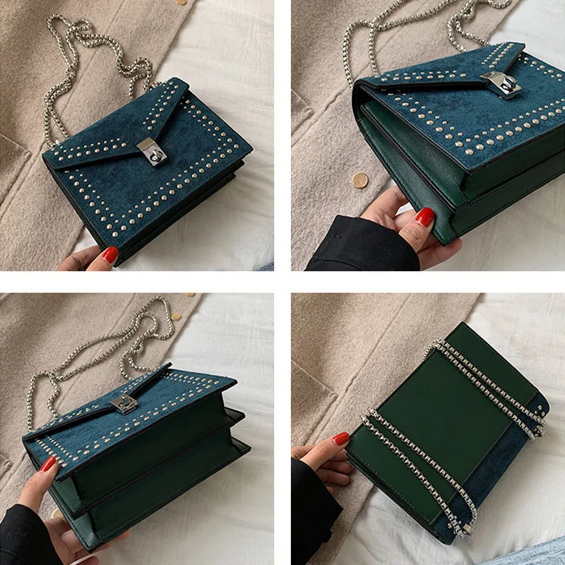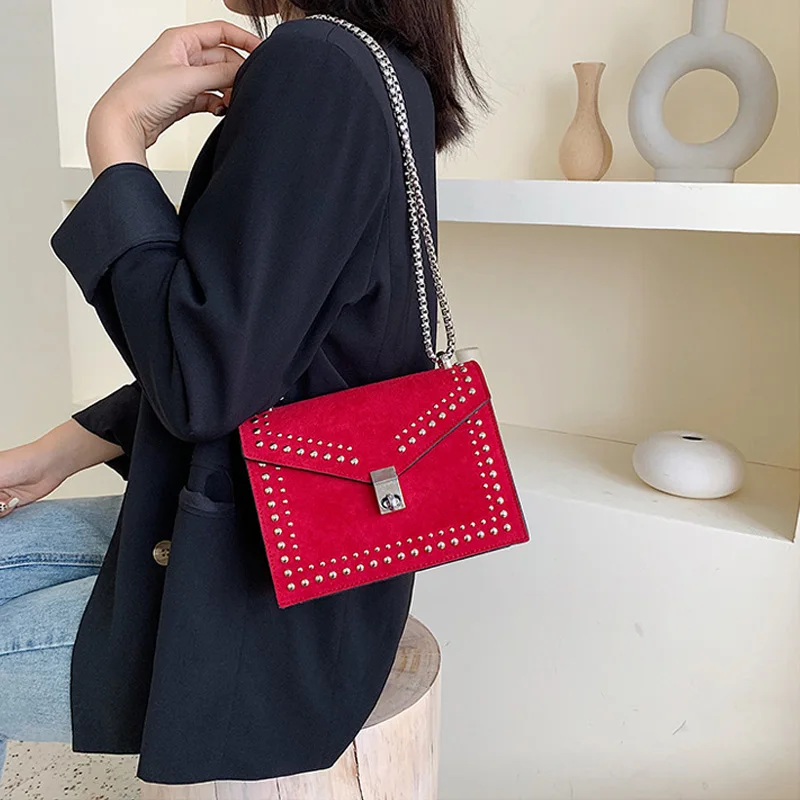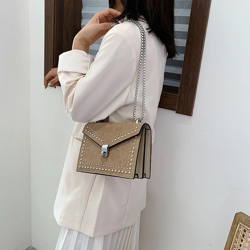 Bolsa feminina de ombro com rebites em couro, pequena bolsa transversal de ombro, com corrente, para mulheres 2021