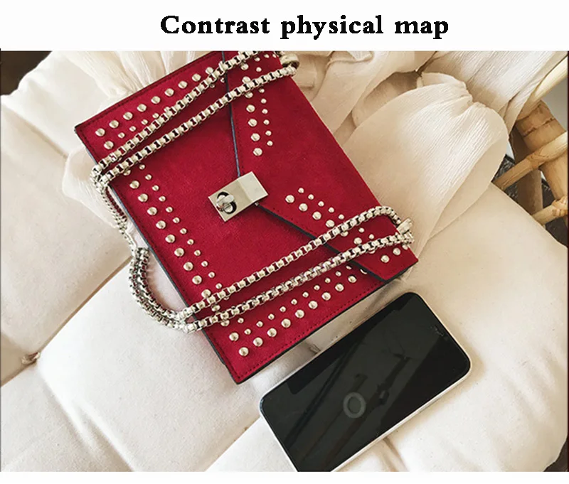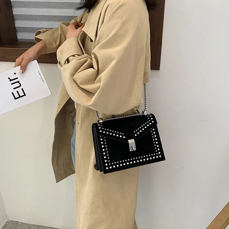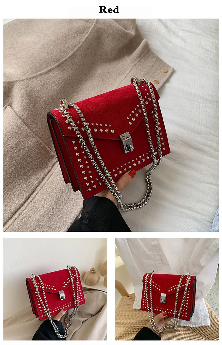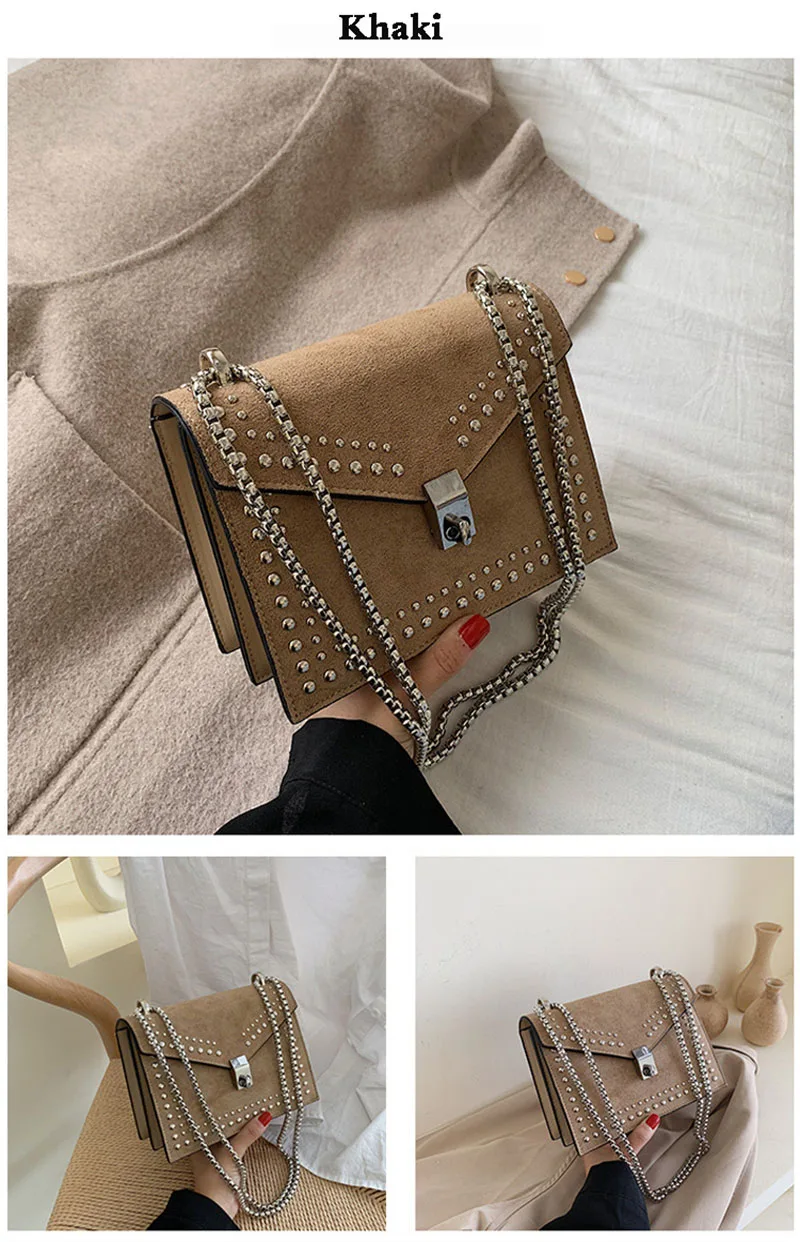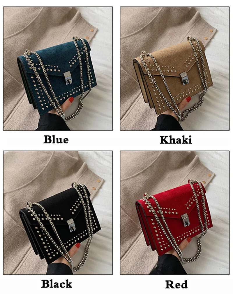 Bolsa feminina de ombro com rebites em couro, pequena bolsa transversal de ombro, com corrente, para mulheres 2021
