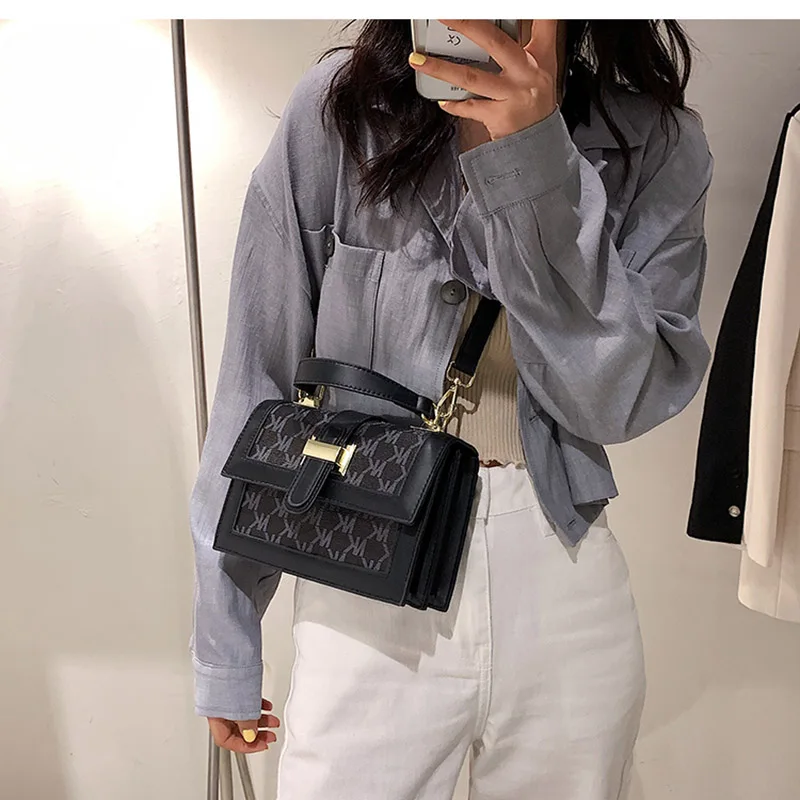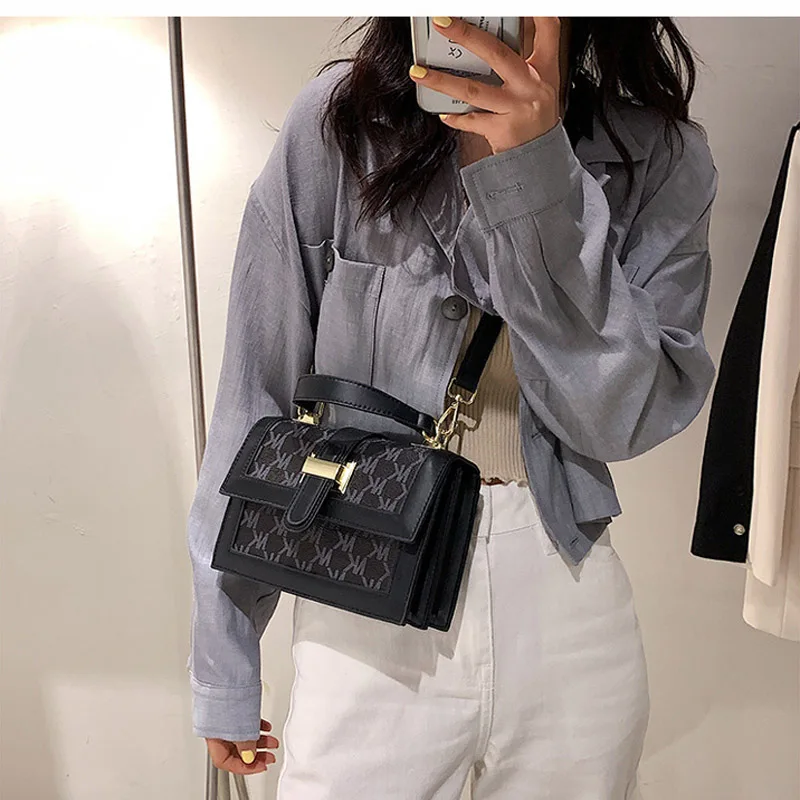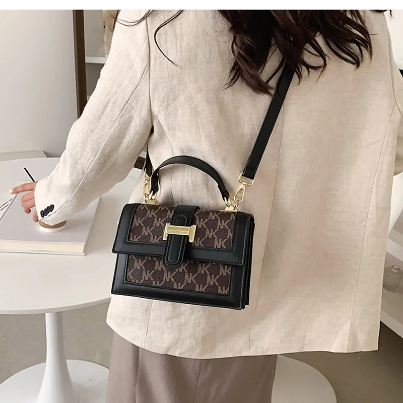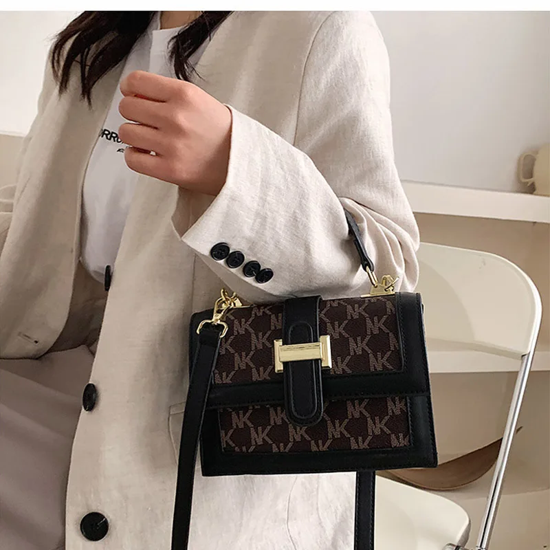 Bolsa feminina luxuosa de ombro, bolsa carteiro com aba e couro pu de alta qualidade para viagem