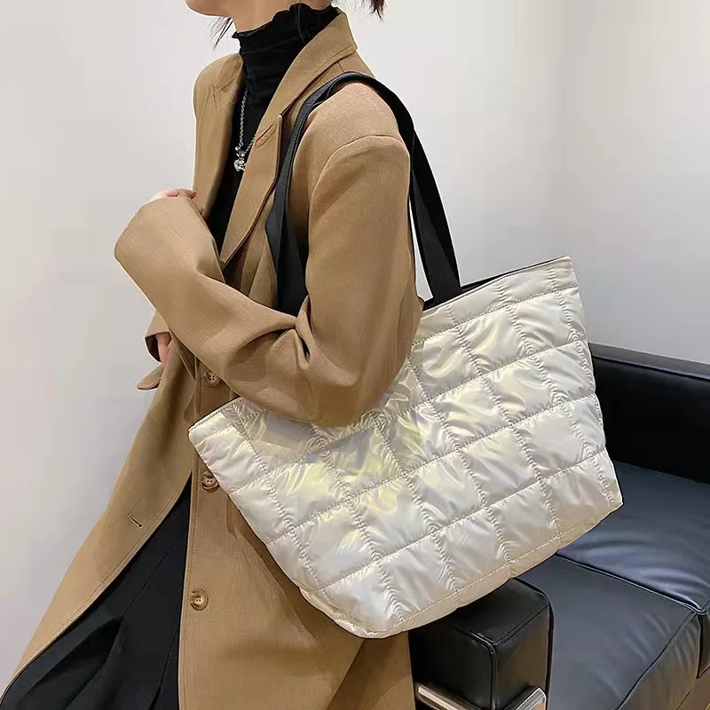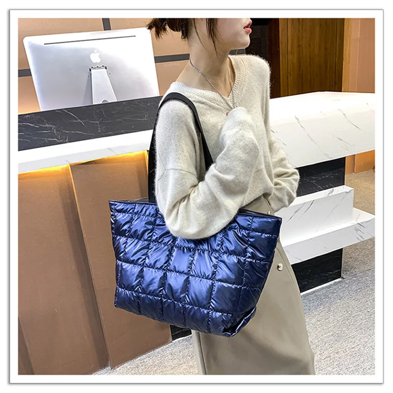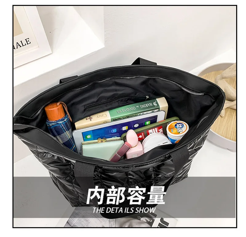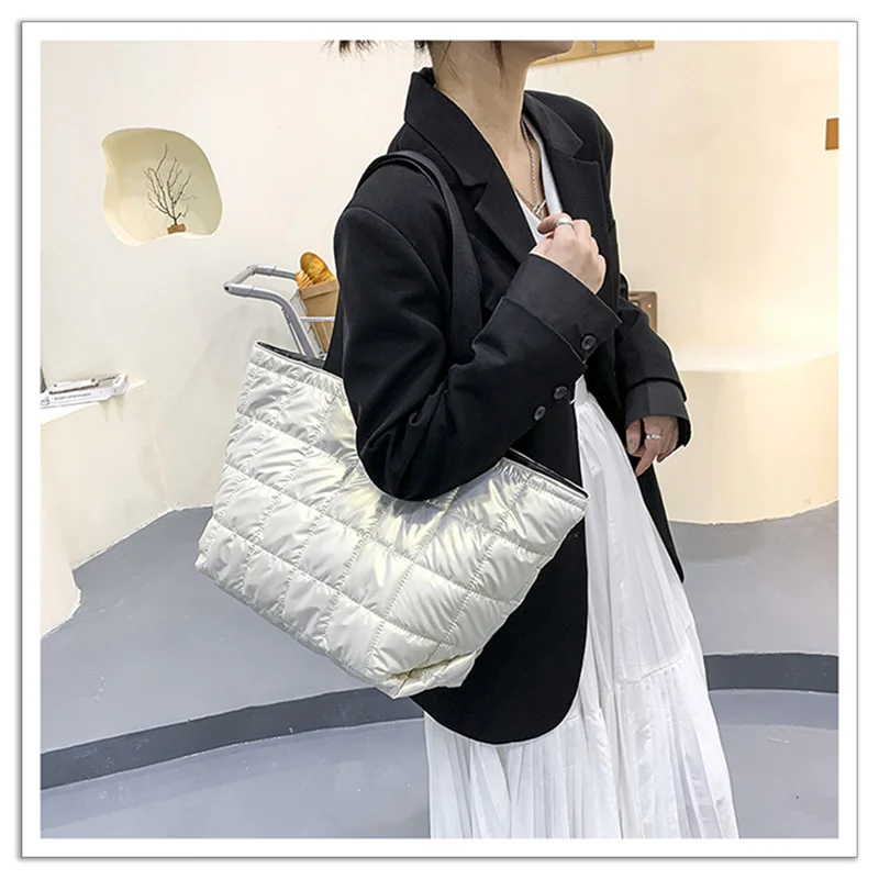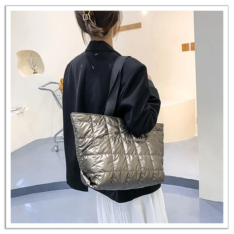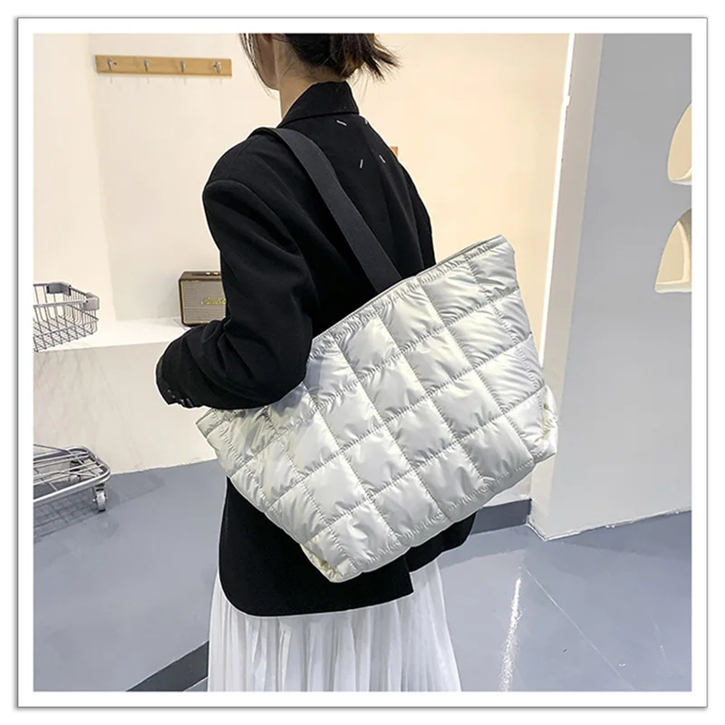 Casual para baixo algodão sacos de ombro das mulheres bolsas de designer de náilon senhoras grande capacidade espaço almofada al
