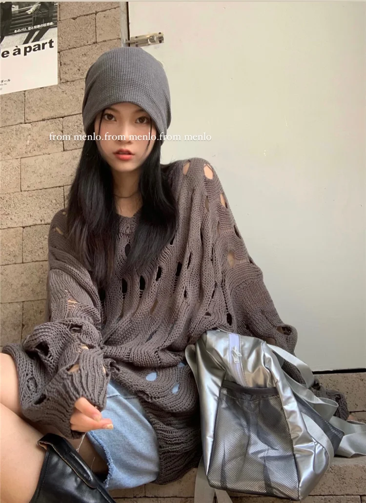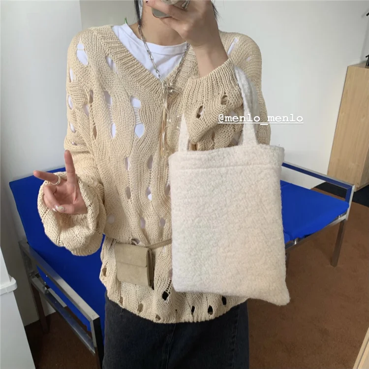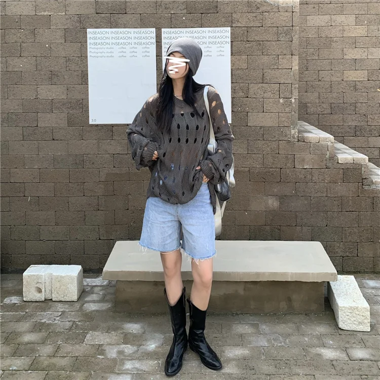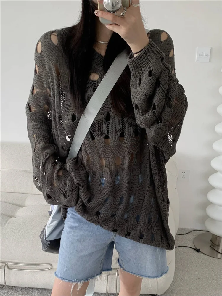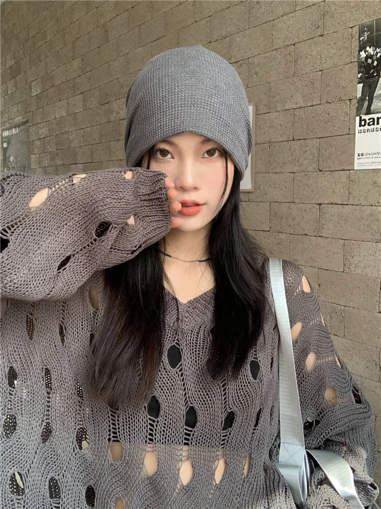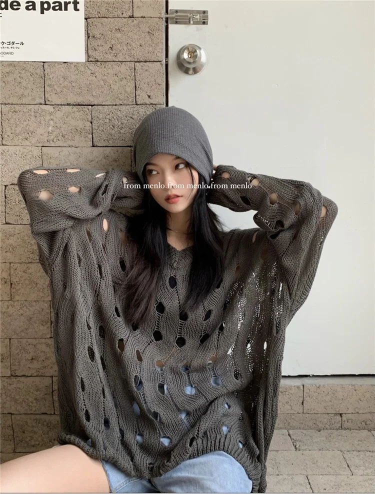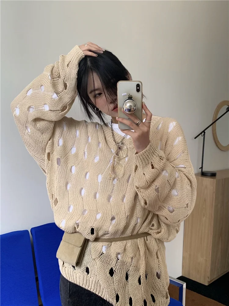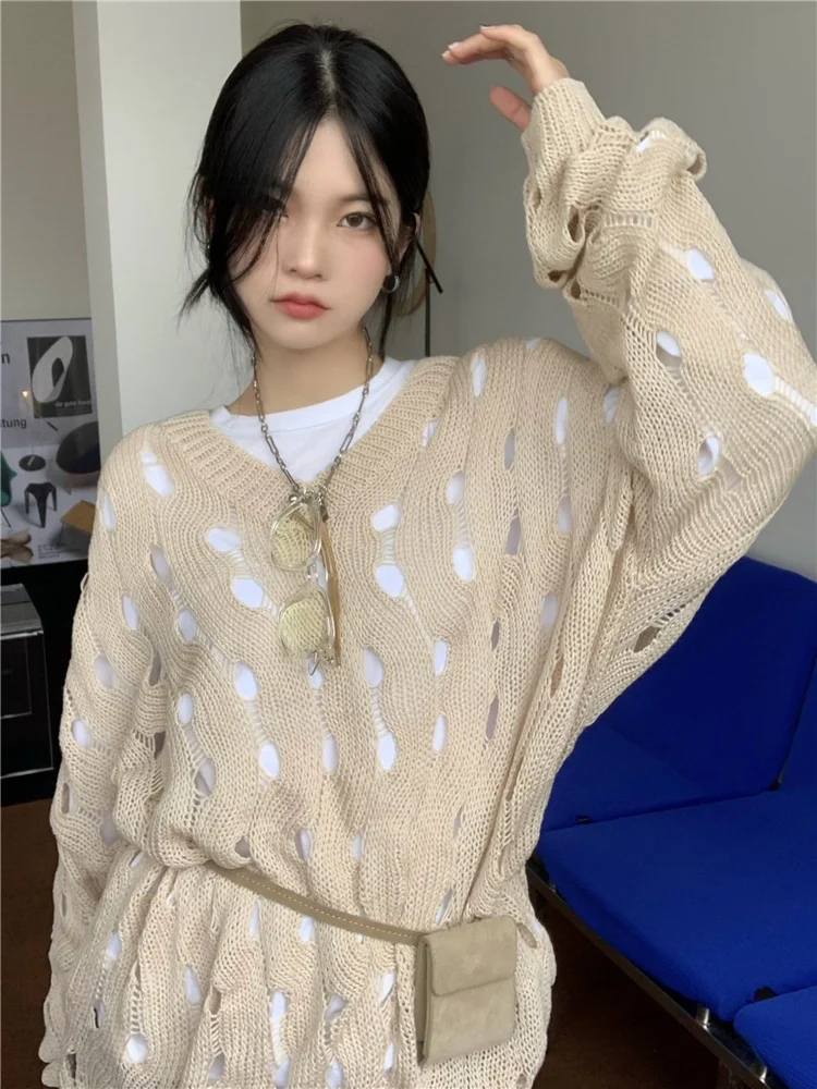 Chic V-neck Sweater Bottoming Hollow-out Sweater for Women 2021 New Autumn and Winter Black Thin Inner Top