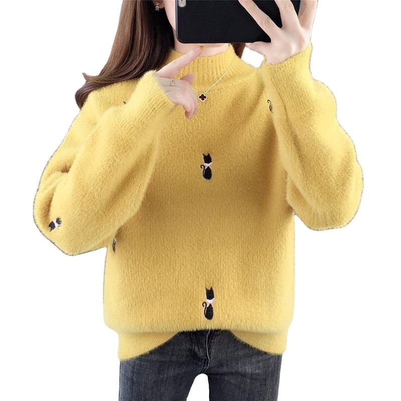 clothing female qiu dong languid is lazy wind half a turtleneck sweater 2021 new han edition loose embroidered jacket