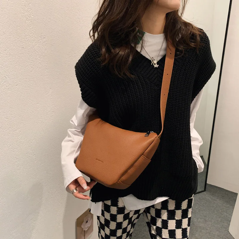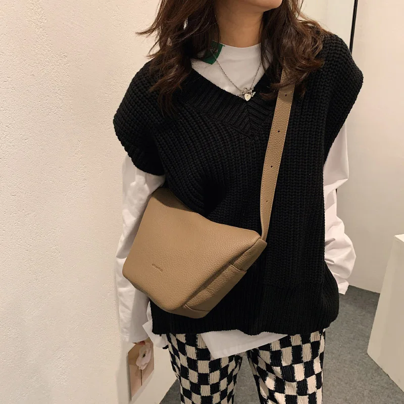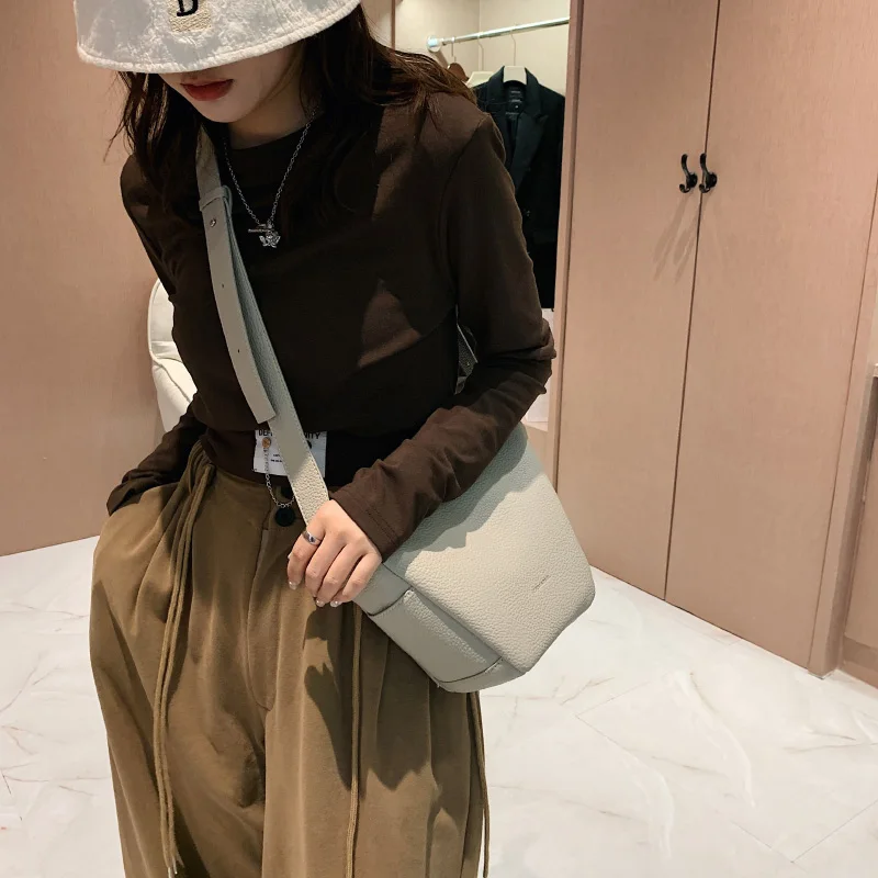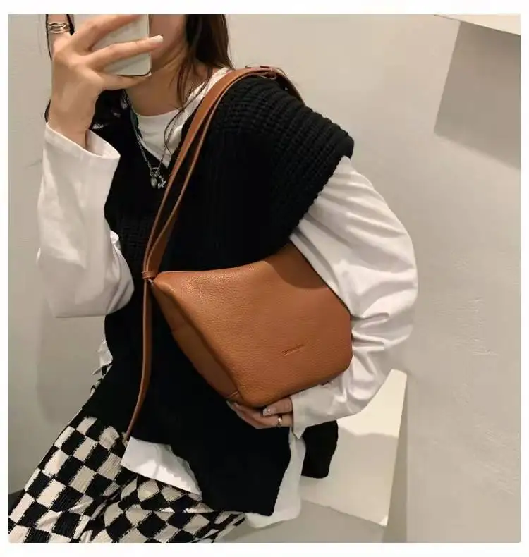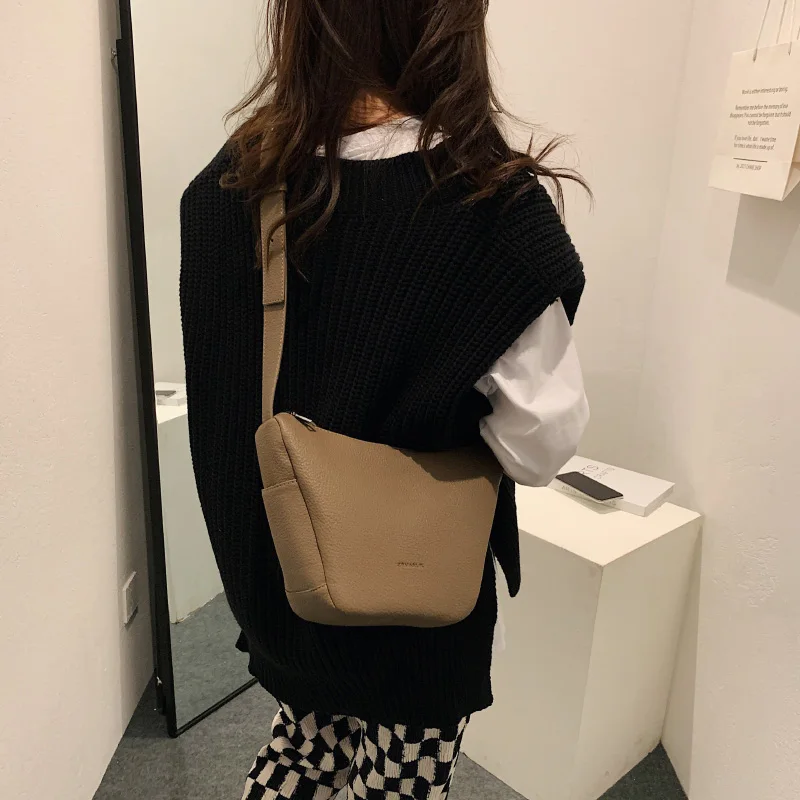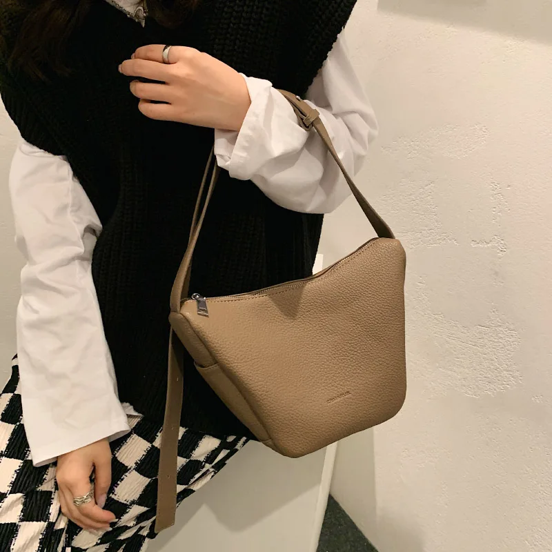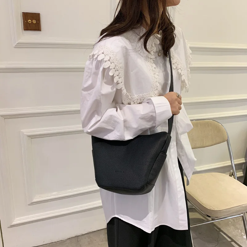 Cor sólida couro pequena balde crossbody sacos para as mulheres retro designer sacos de ombro 2022 inverno bolsas viagem luxo fe