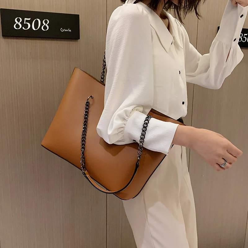 Designer de couro do plutônio sacos de ombro para as mulheres 2021 corrente alta capacidade bolsas viagem luxo mão saco feminino