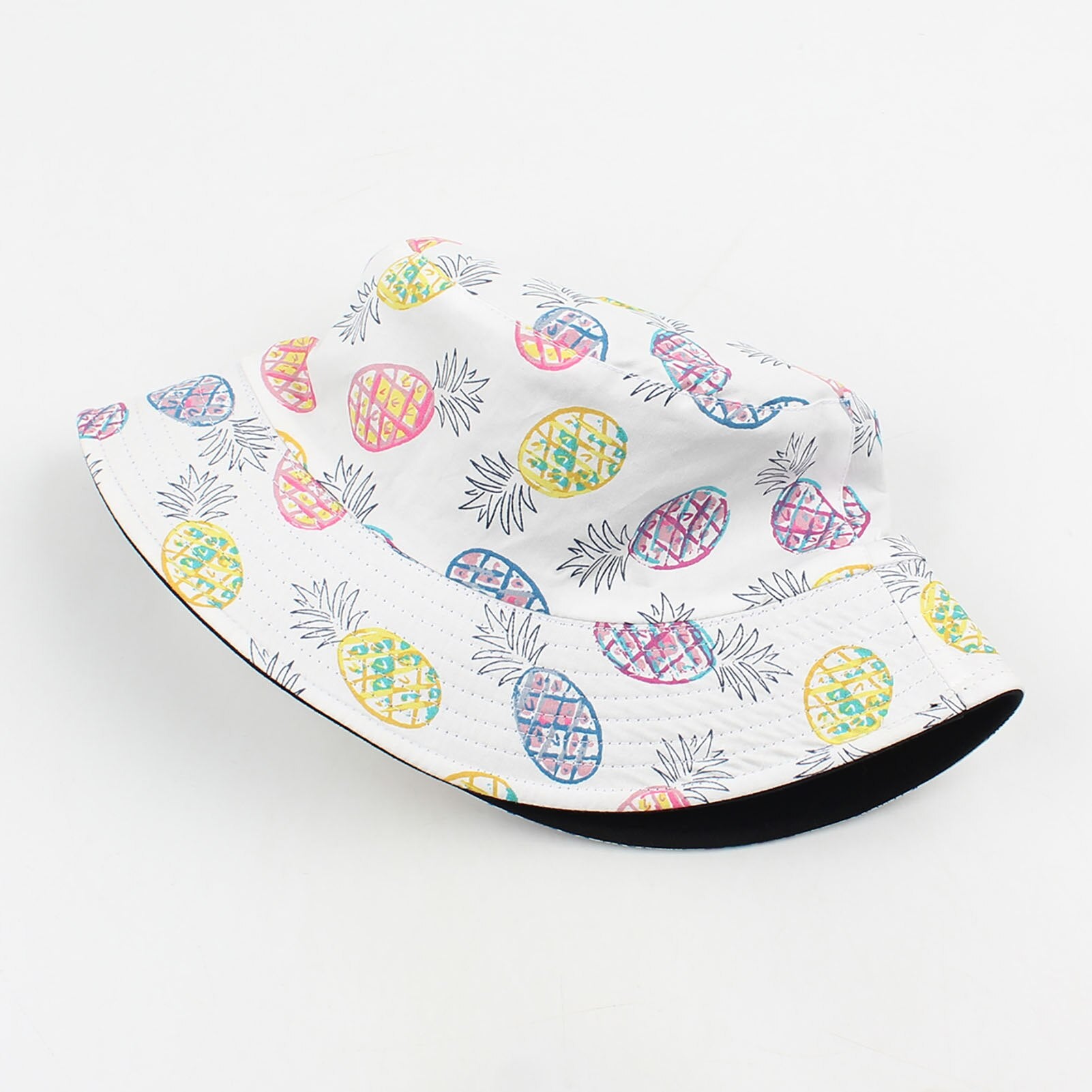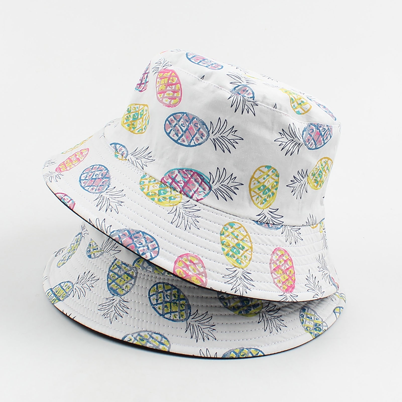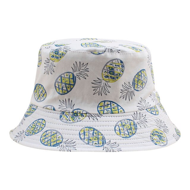 Double-sided Wearing Bucket Hat Unisex Cotton Flat Sun Hat Reversible Sunshading Pineapple Print Fisherman Hat Summer Panama Cap
