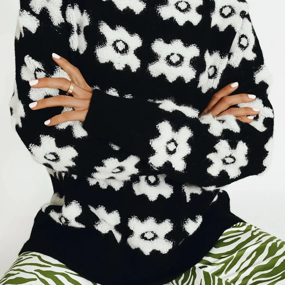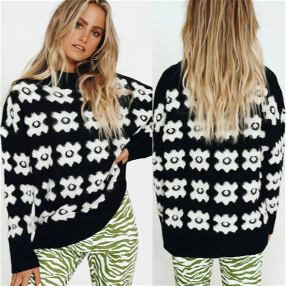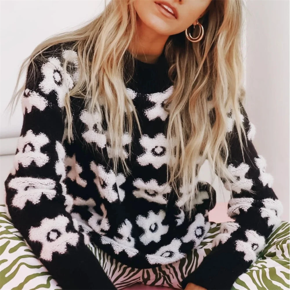 Flower Winter Sweater Women 2021 New Casual Loose Pullover Round Neck Long-sleeved Thick Knitted Top
