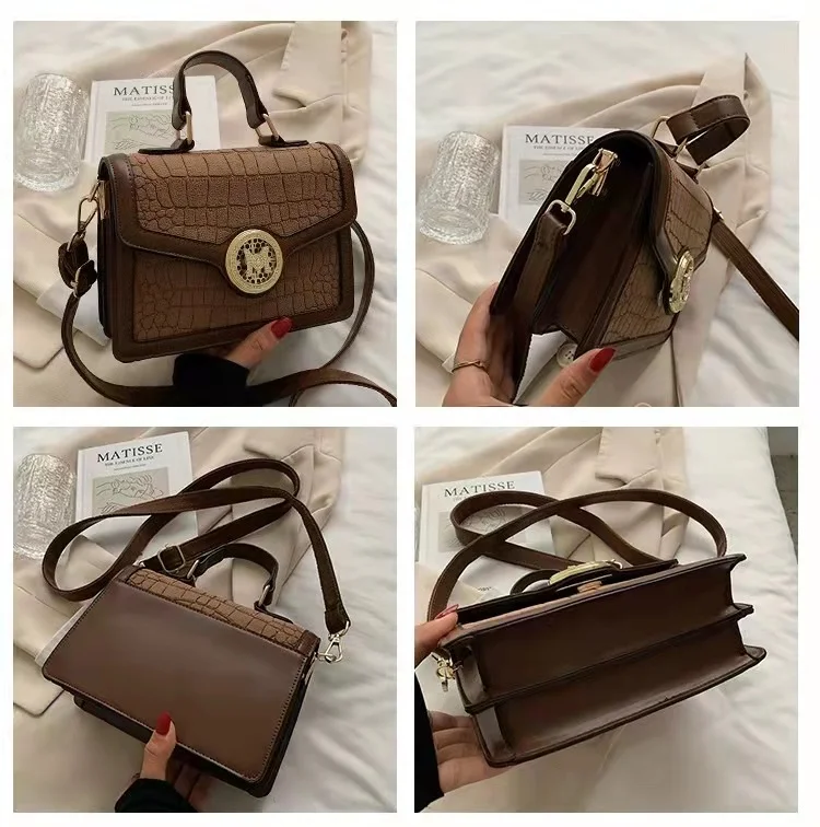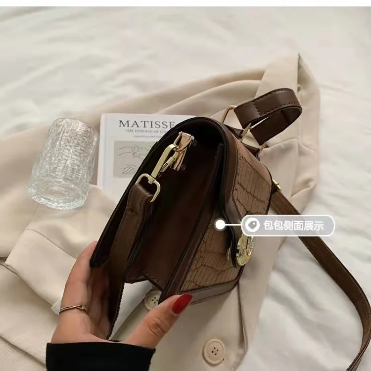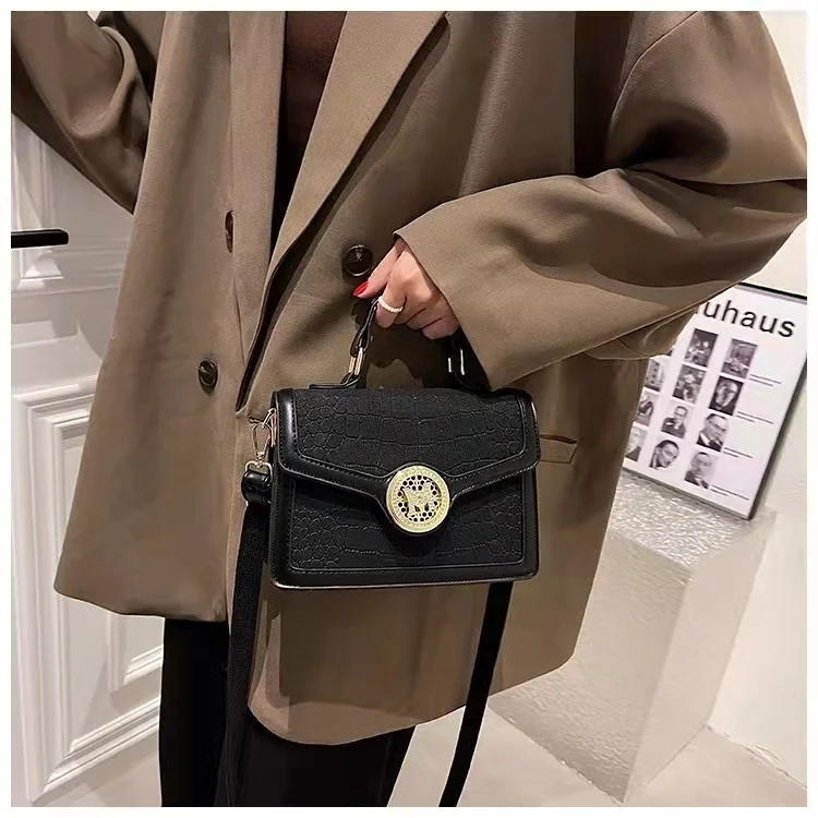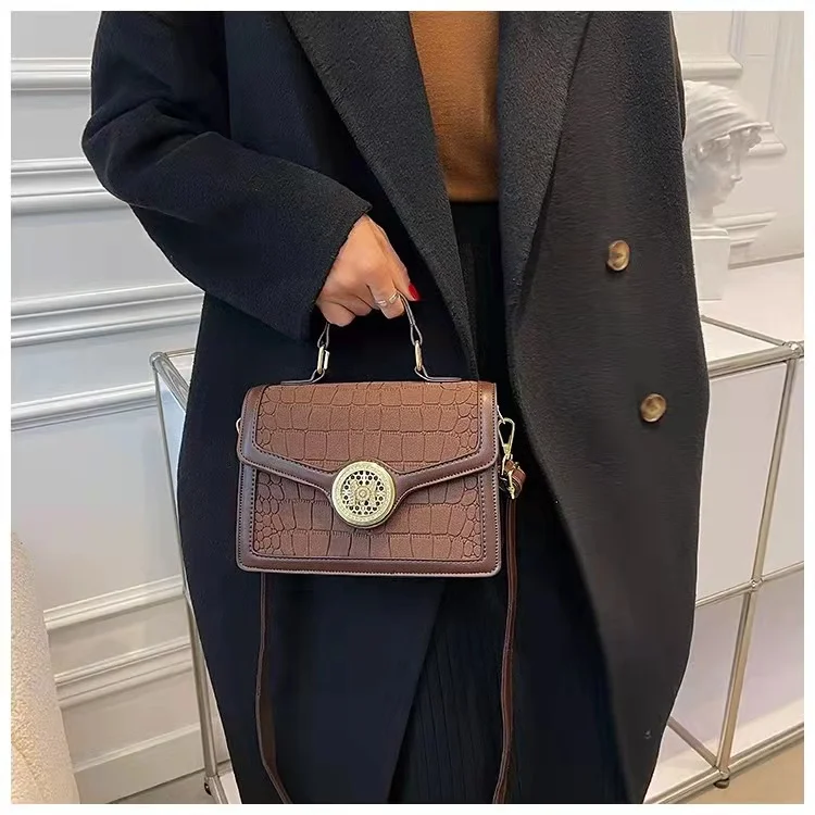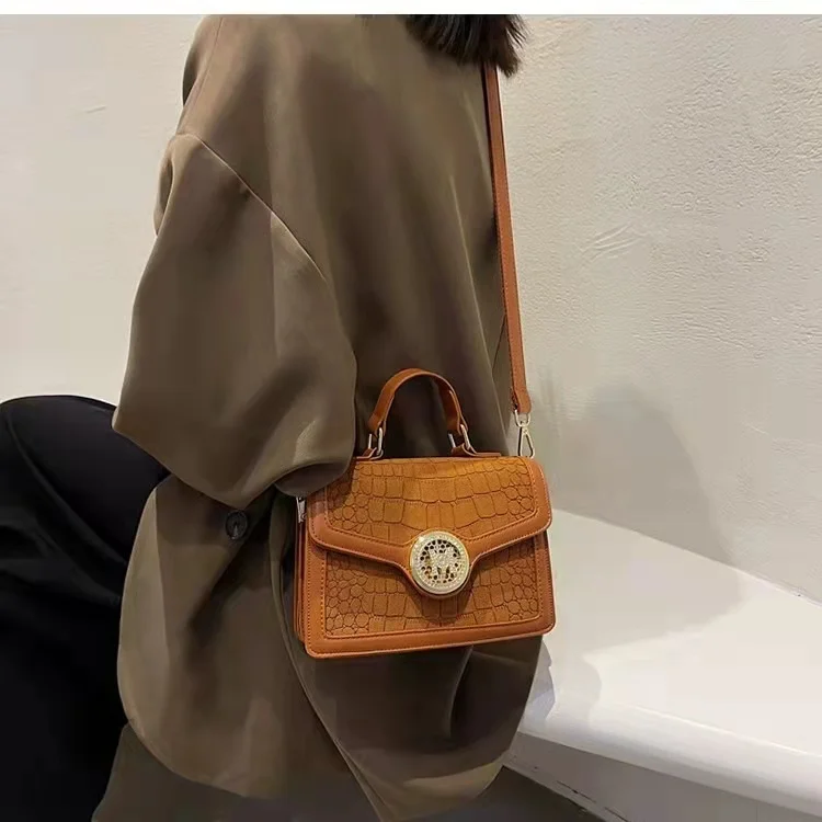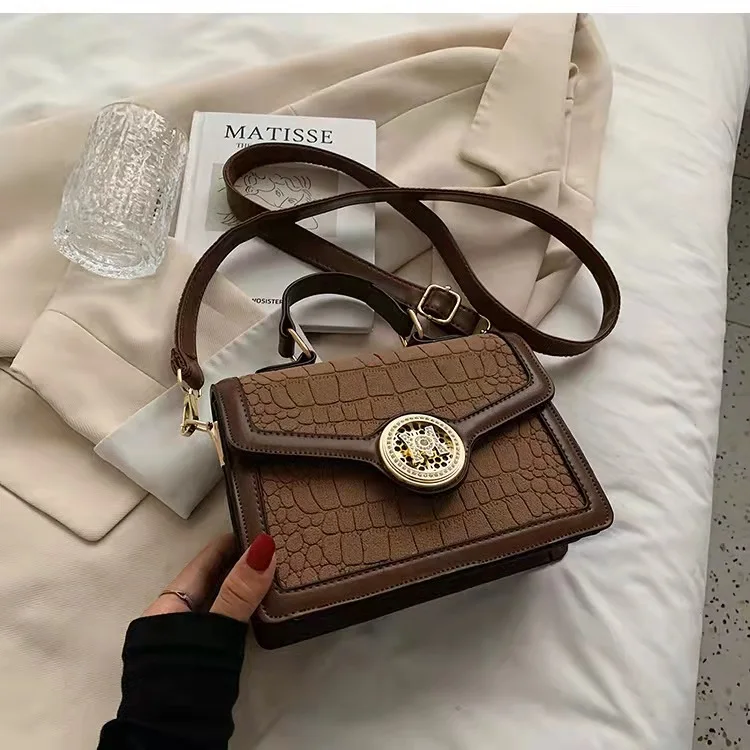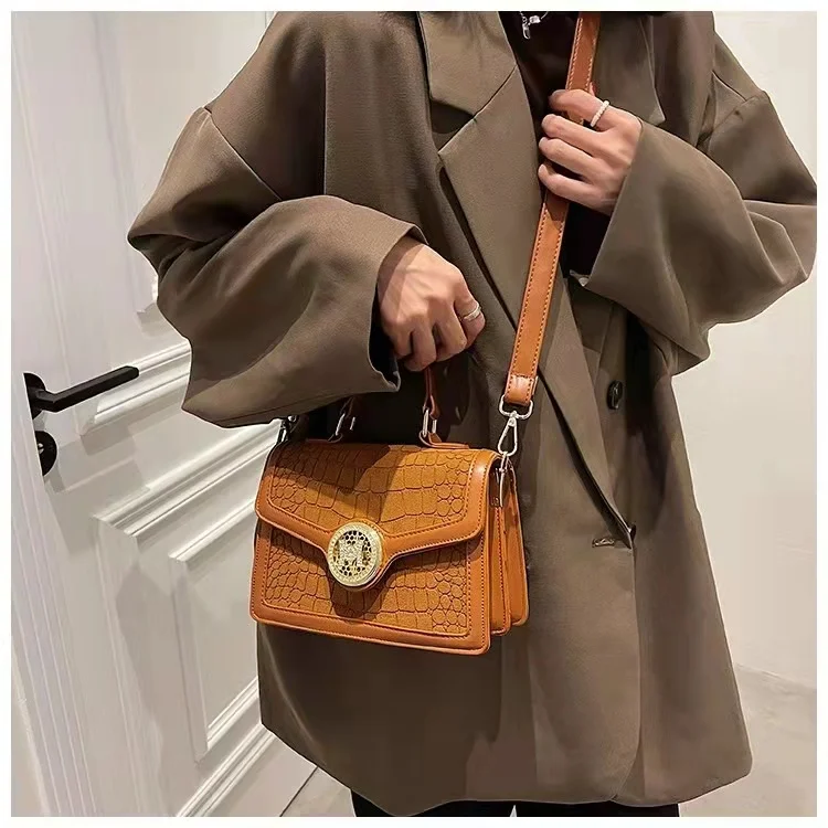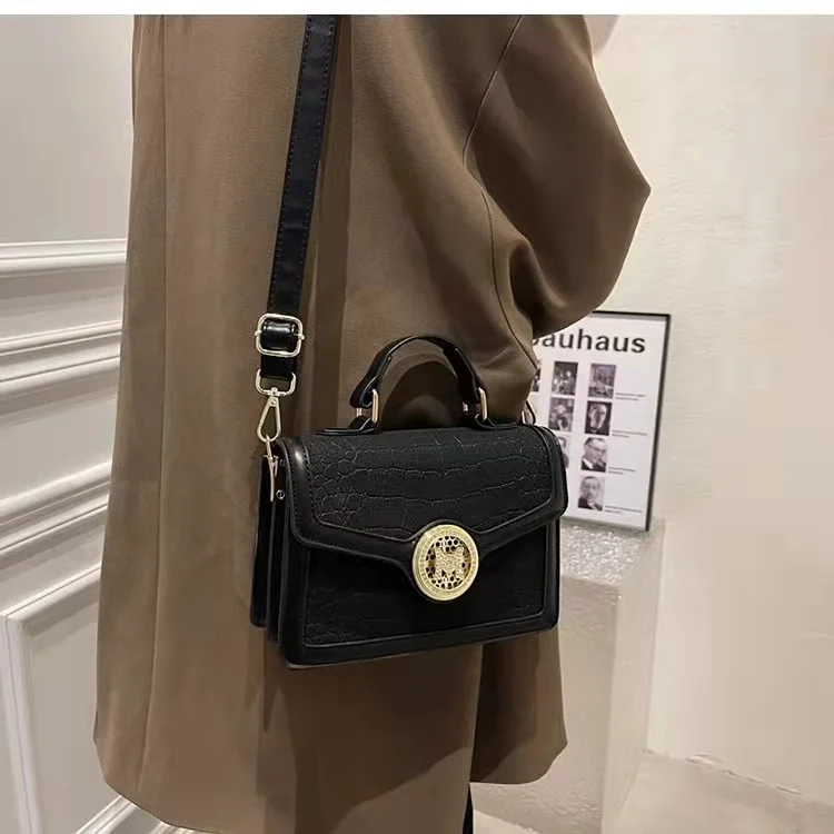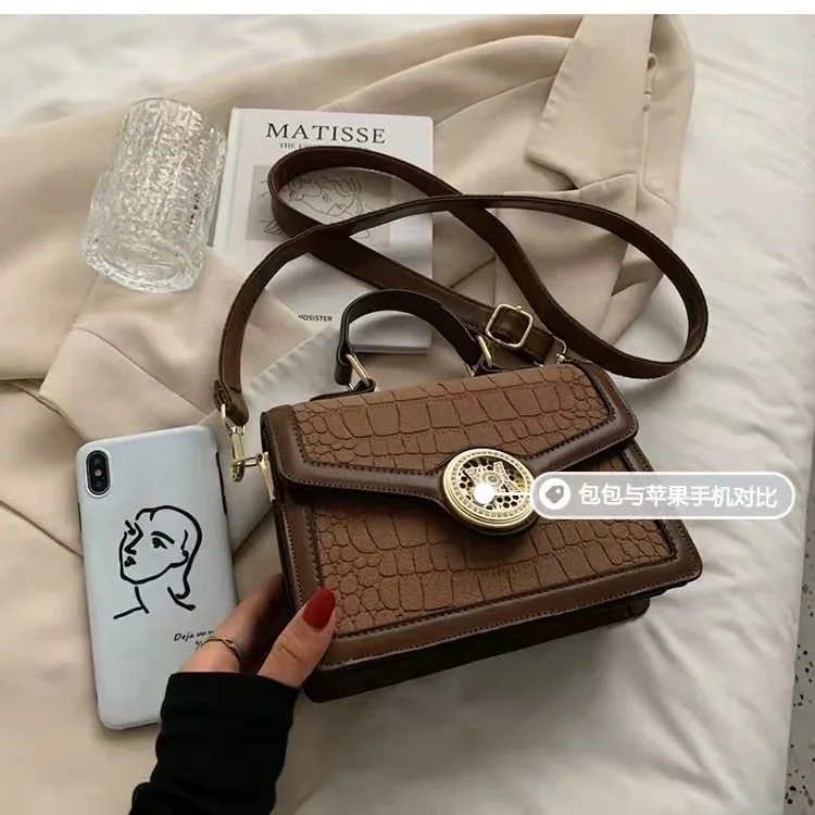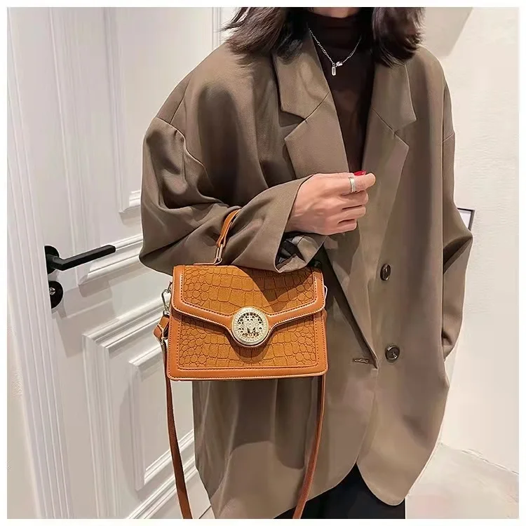 Frosted stitching crocodile pattern PU trend small round lock single shoulder messenger portable small square bag