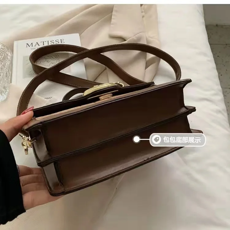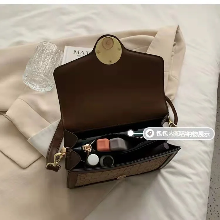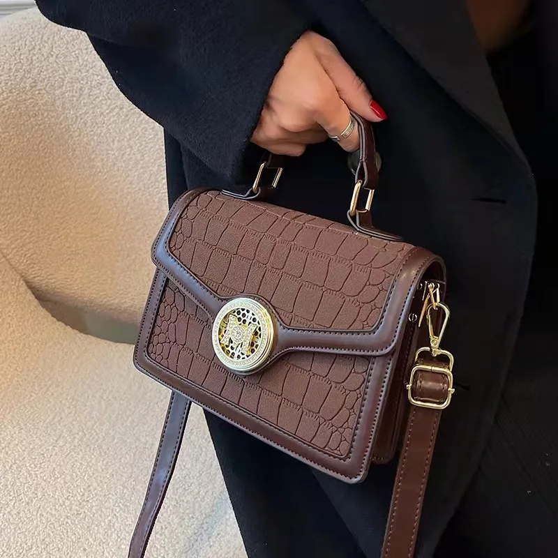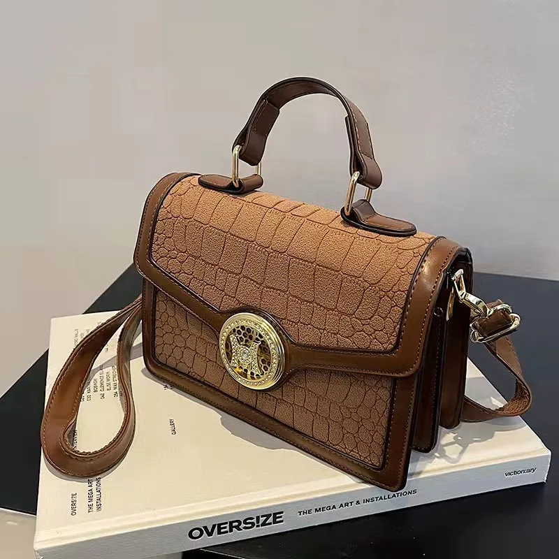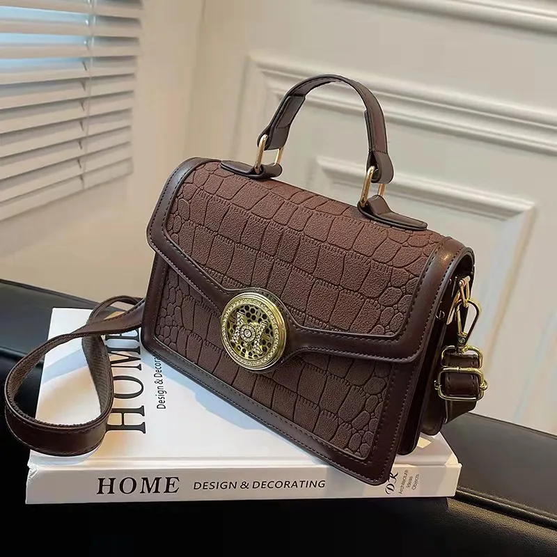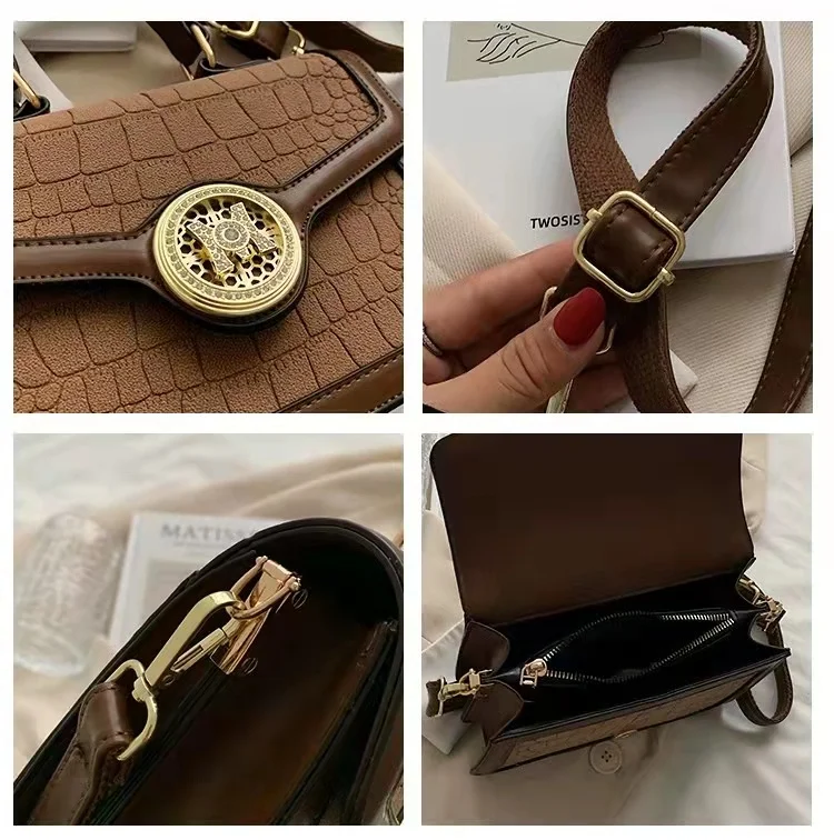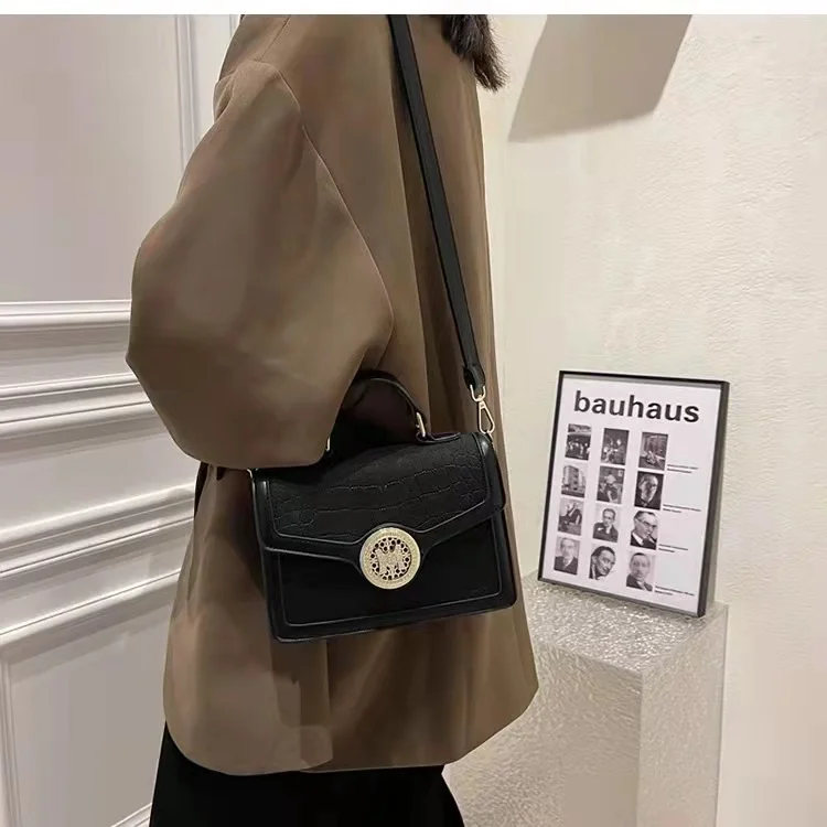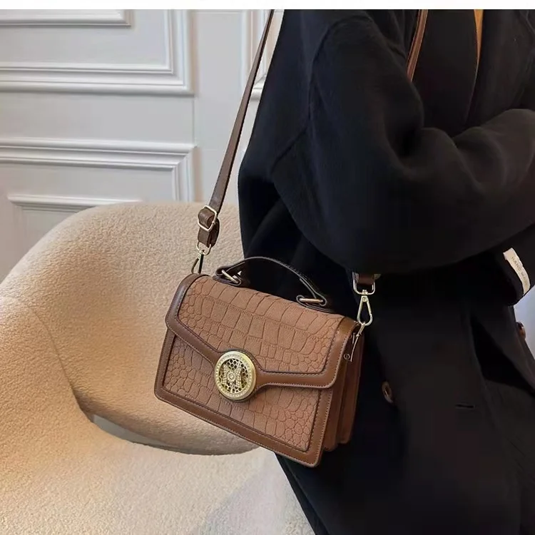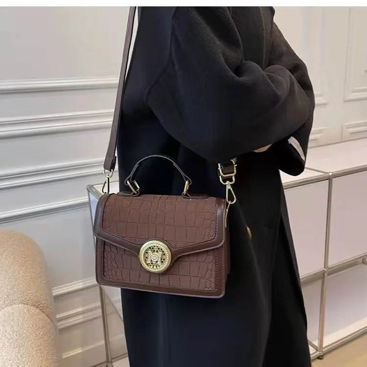 Frosted stitching crocodile pattern PU trend small round lock single shoulder messenger portable small square bag