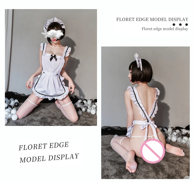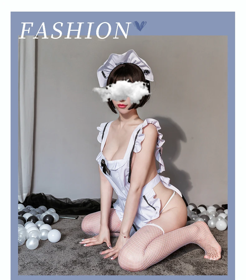 Kostum Cosplay Pembantu Anime Pakaian Cos Pelayan Bar Kopi Putih Desain Hollow Out untuk Wanita Seragam Lingrie Seksi Baru