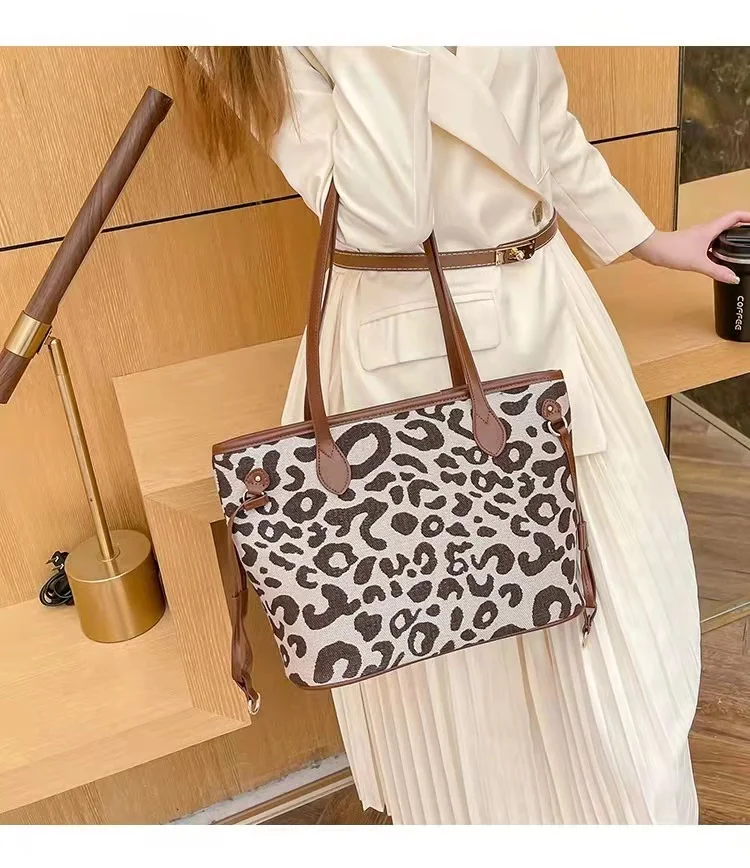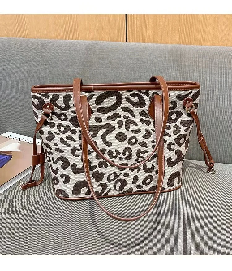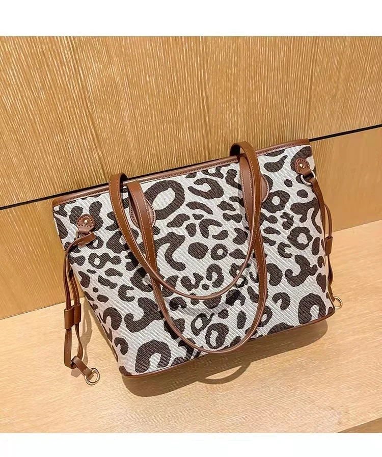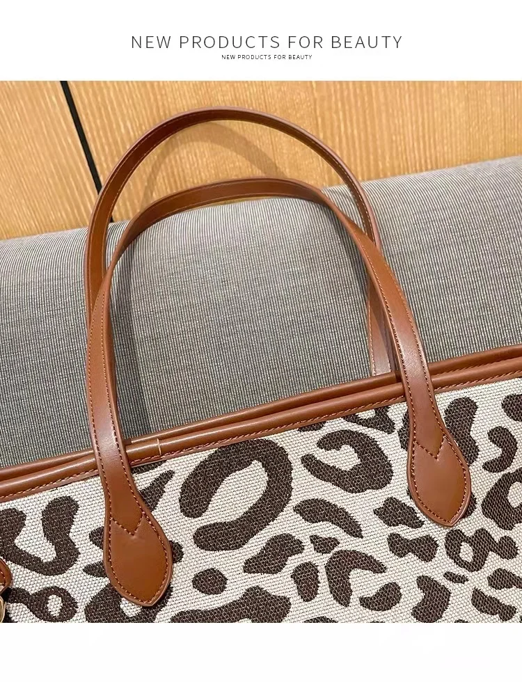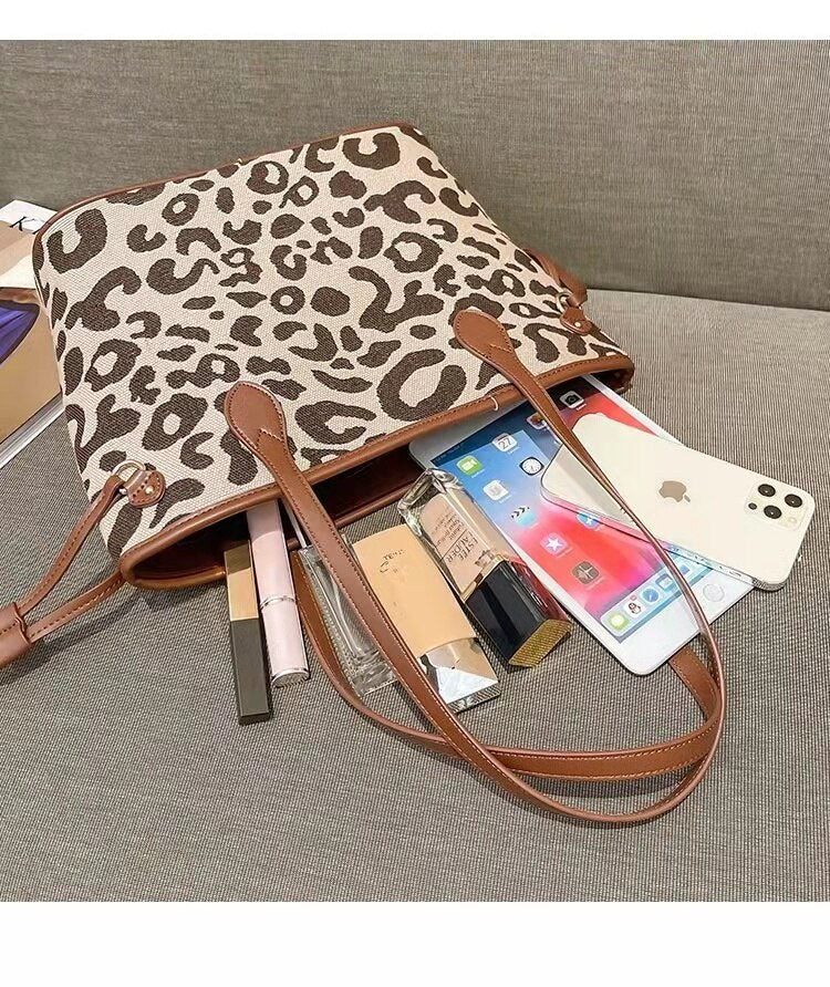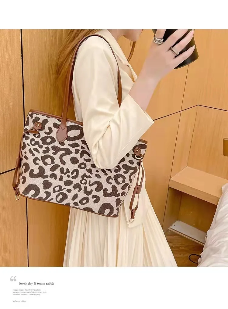 Leopard print tote bag large-capacity commuter trendy shoulder bag one drop delivery