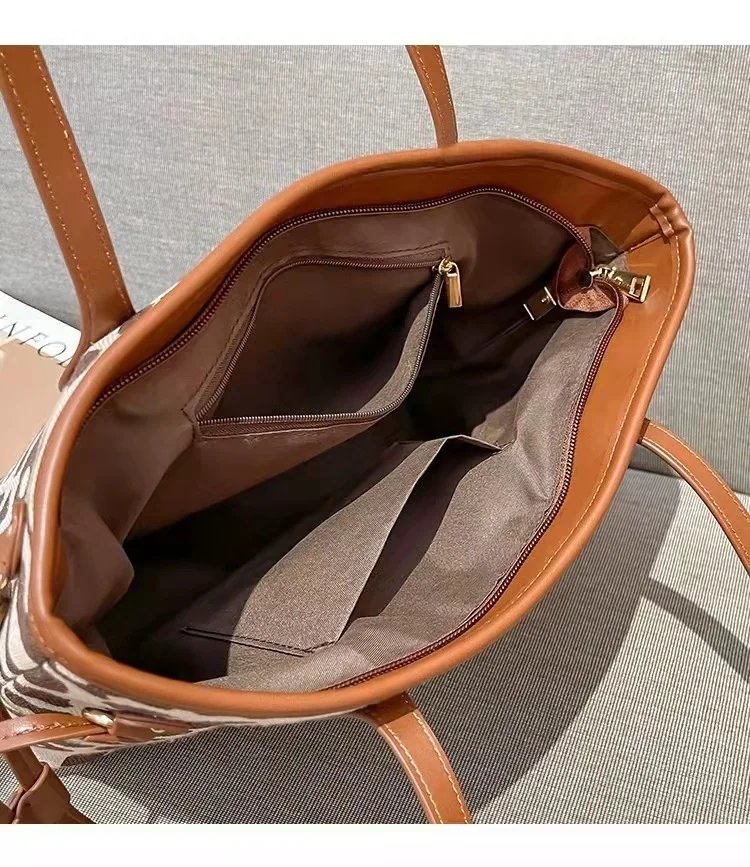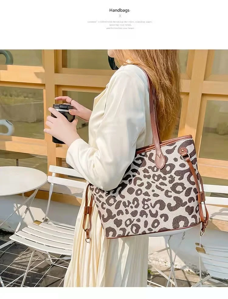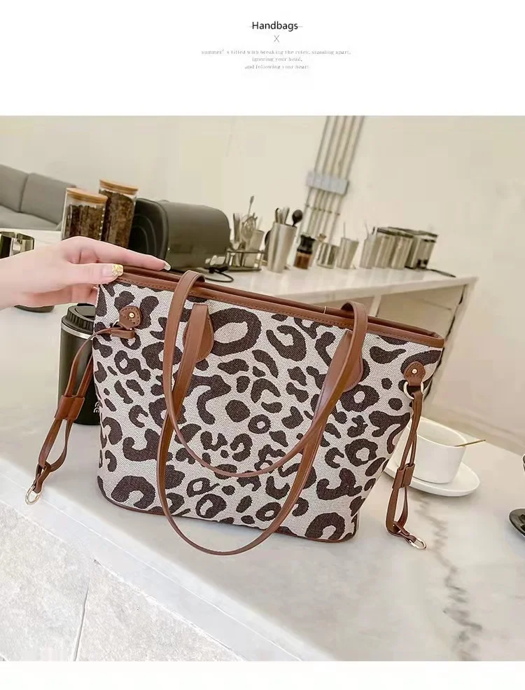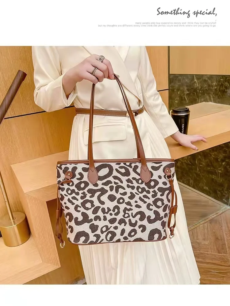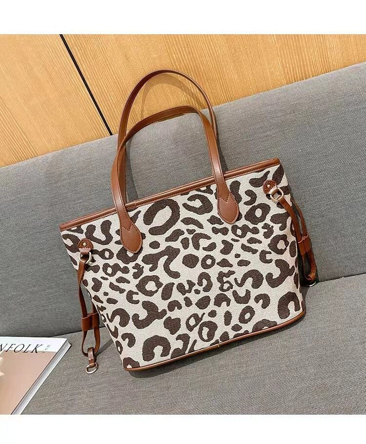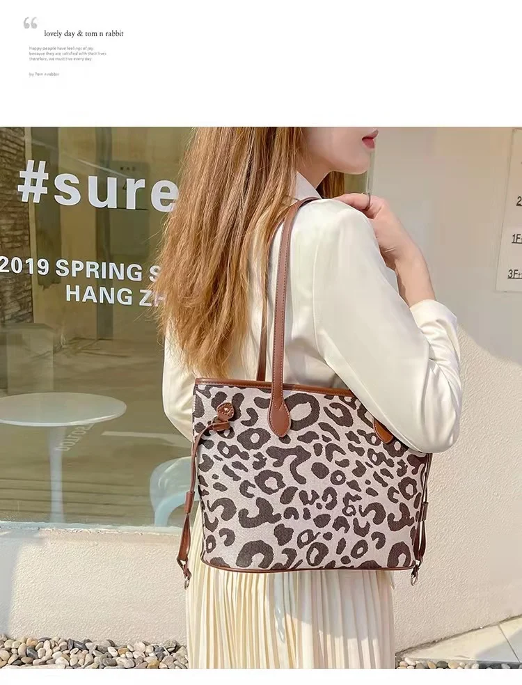 Leopard print tote bag large-capacity commuter trendy shoulder bag one drop delivery