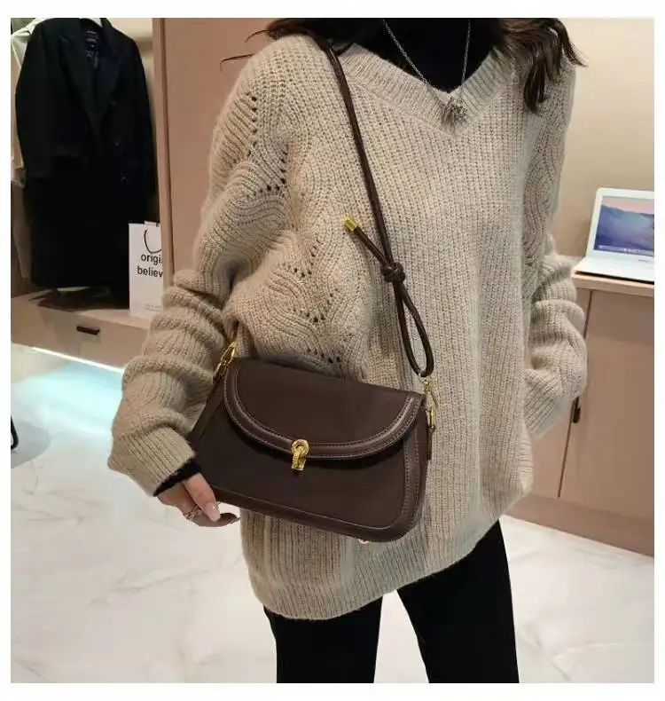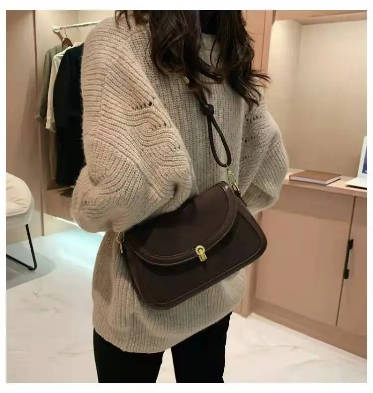 Luxury high-end design brand retro stitching one-shoulder messenger ladies texture bag